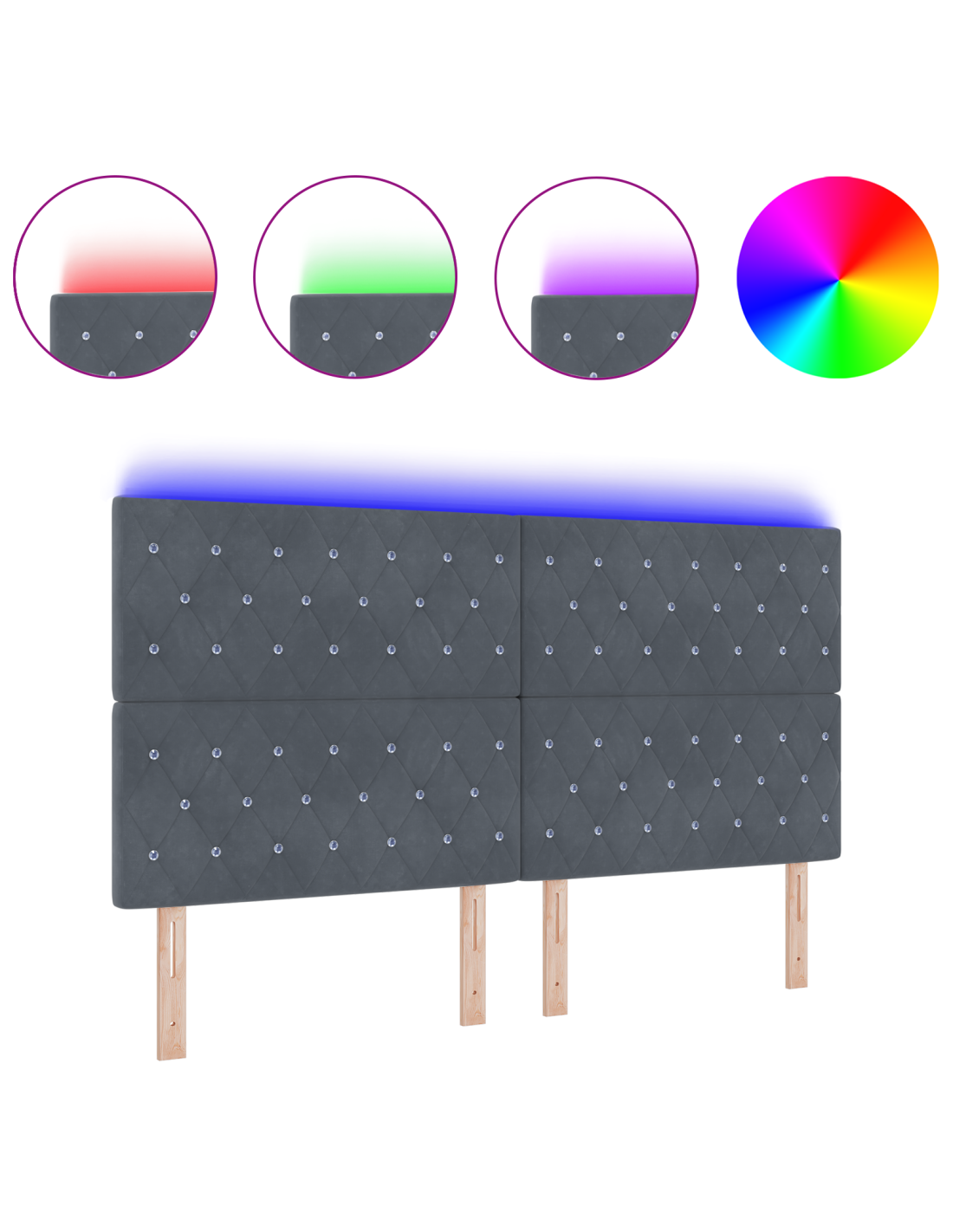 - Strisce LED RGB: Con le sue vivaci strisce LED RGB, questa testiera porta un'atmosfera moderna e fresca nella tua stanza. Puoi giocare con i colori per creare l'illuminazione perfetta per ogni momento, sia che tu stia rilassandoti o accogliendo ospiti.