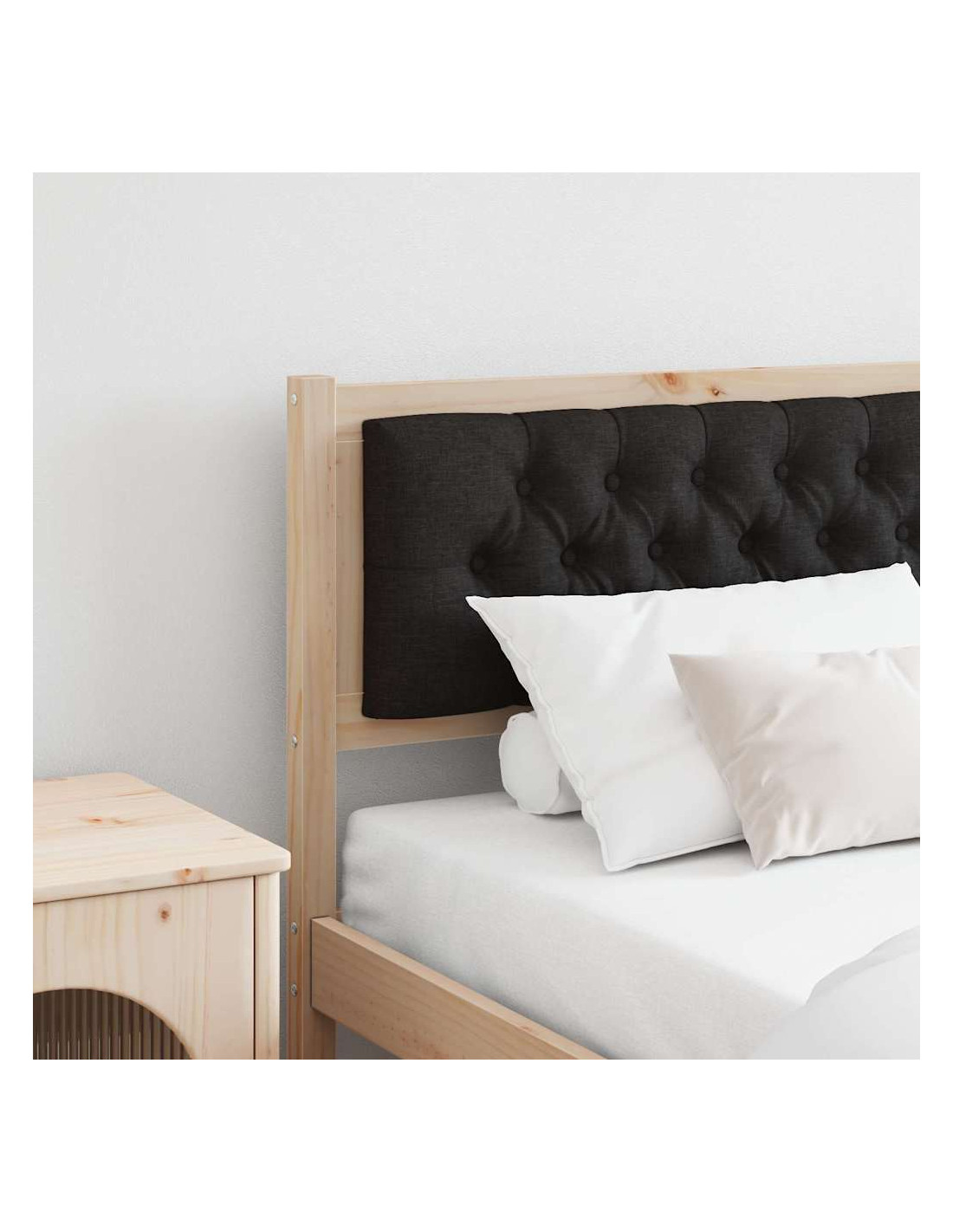 - Materiali premium: Fatto in legno massello di pino, questa testata è forte e durevole. Il legno di pino è noto per la sua robustezza e mantiene un aspetto lucido nel tempo. Il tessuto grigio chiaro aggiunge un tocco morbido e rilassante.