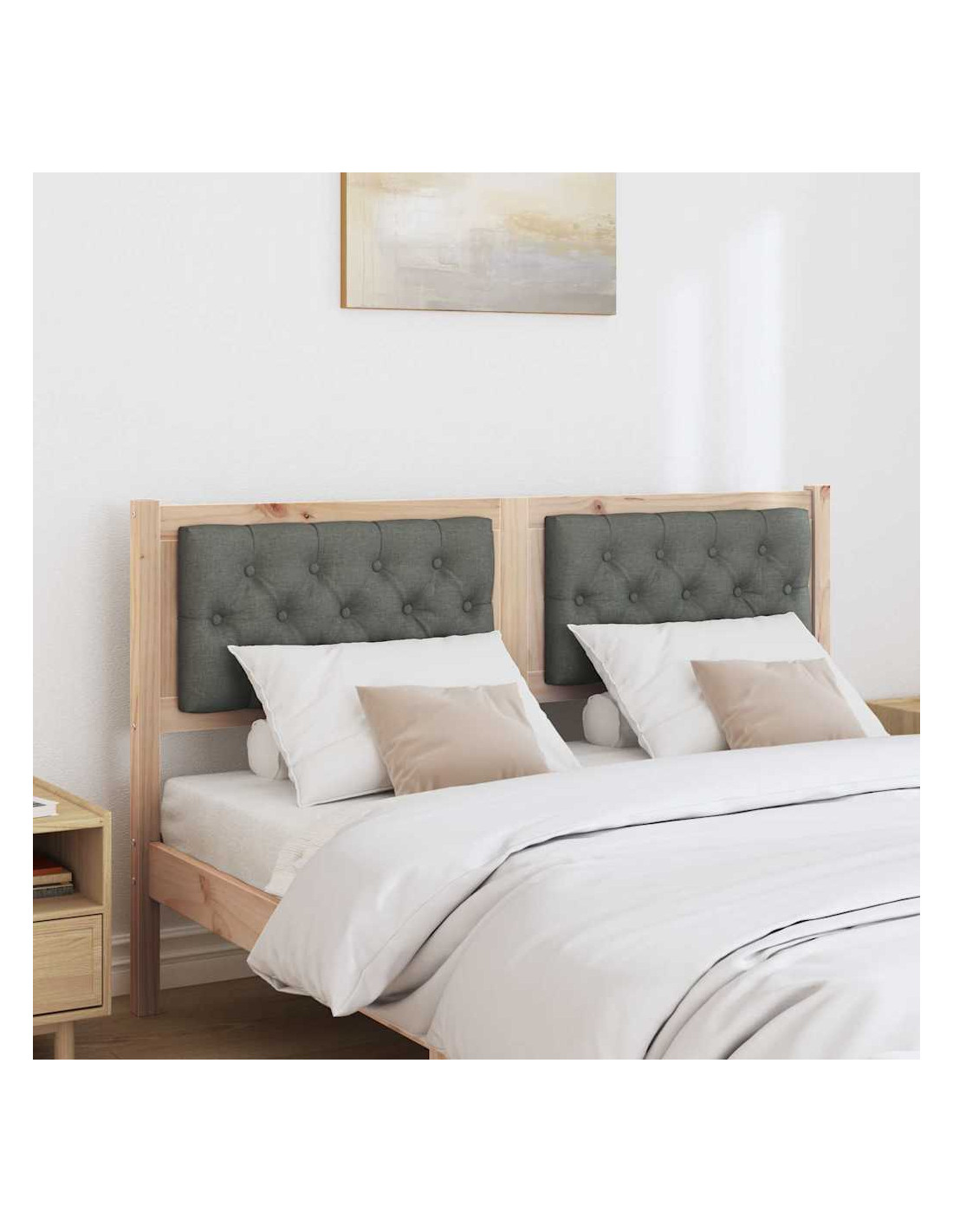- Materiali premium: Fatto in legno massello di pino, questa testata è forte e durevole. Il legno di pino è noto per la sua robustezza e mantiene un aspetto lucido nel tempo. Il tessuto grigio chiaro aggiunge un tocco morbido e rilassante.
