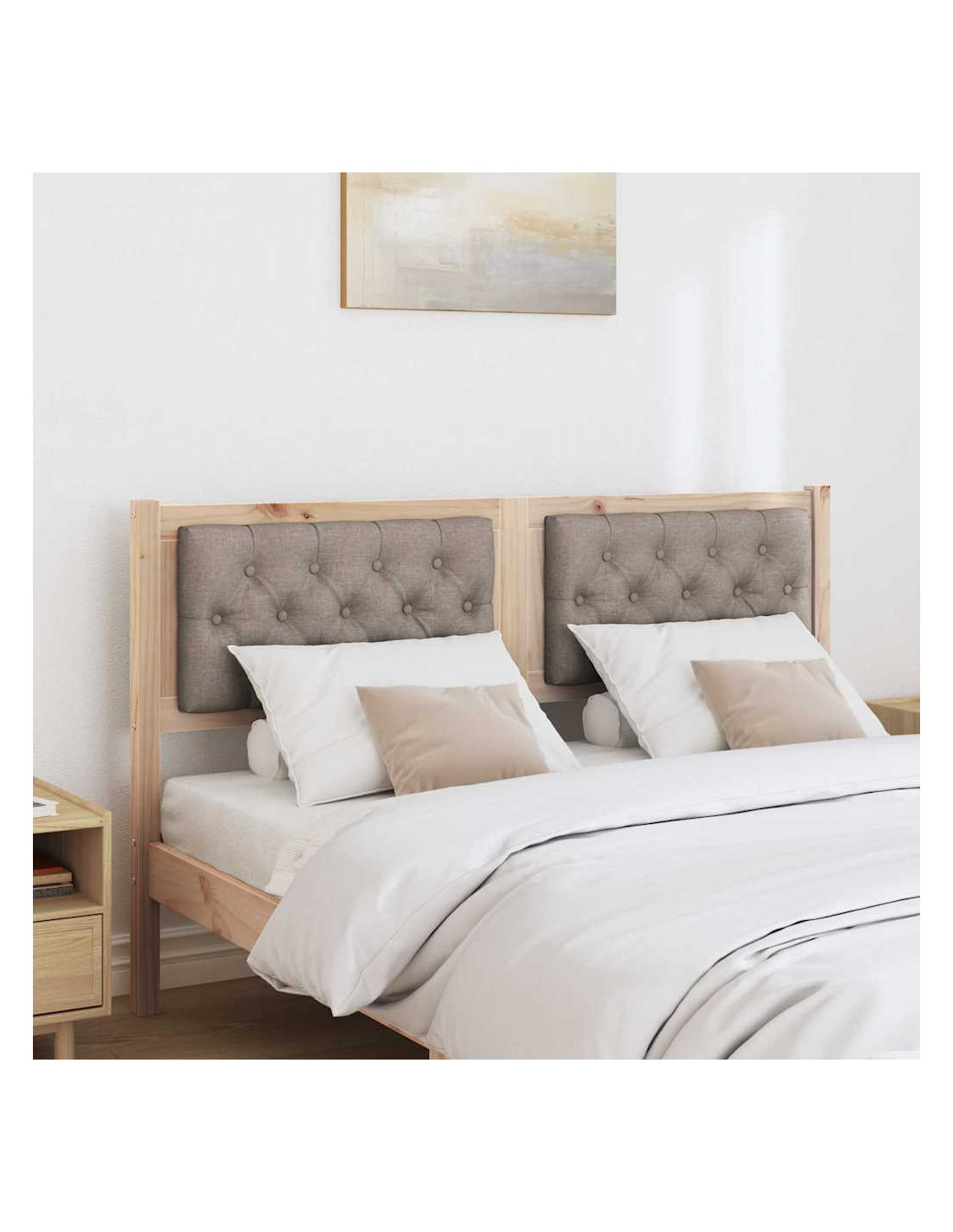 - Materiali premium: Fatto in legno massello di pino, questa testata è forte e durevole. Il legno di pino è noto per la sua robustezza e mantiene un aspetto lucido nel tempo. Il tessuto grigio chiaro aggiunge un tocco morbido e rilassante.
