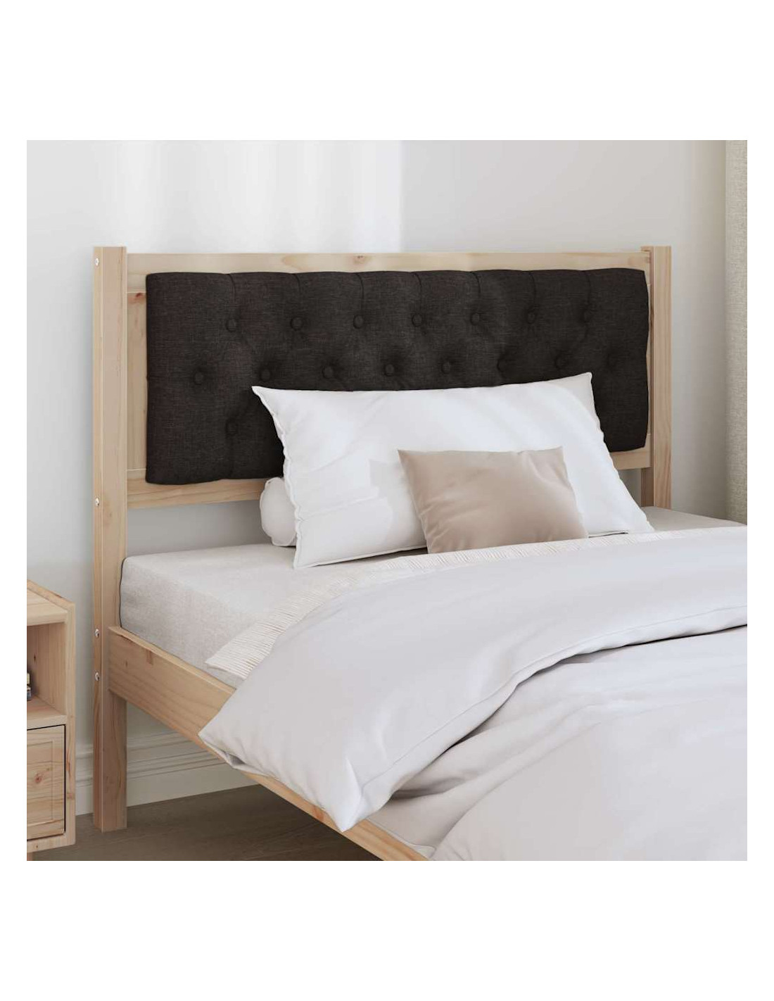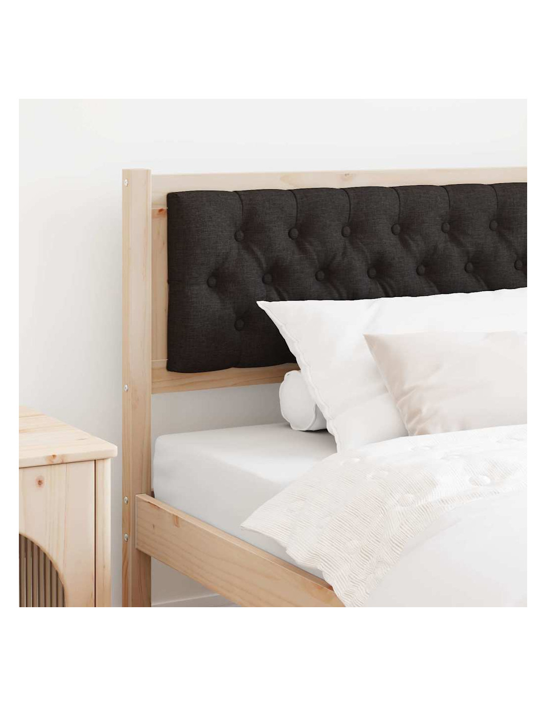 - Materiali premium: Fatto in legno massello di pino, questa testata è forte e durevole. Il legno di pino è noto per la sua robustezza e mantiene un aspetto lucido nel tempo. Il tessuto grigio chiaro aggiunge un tocco morbido e rilassante.