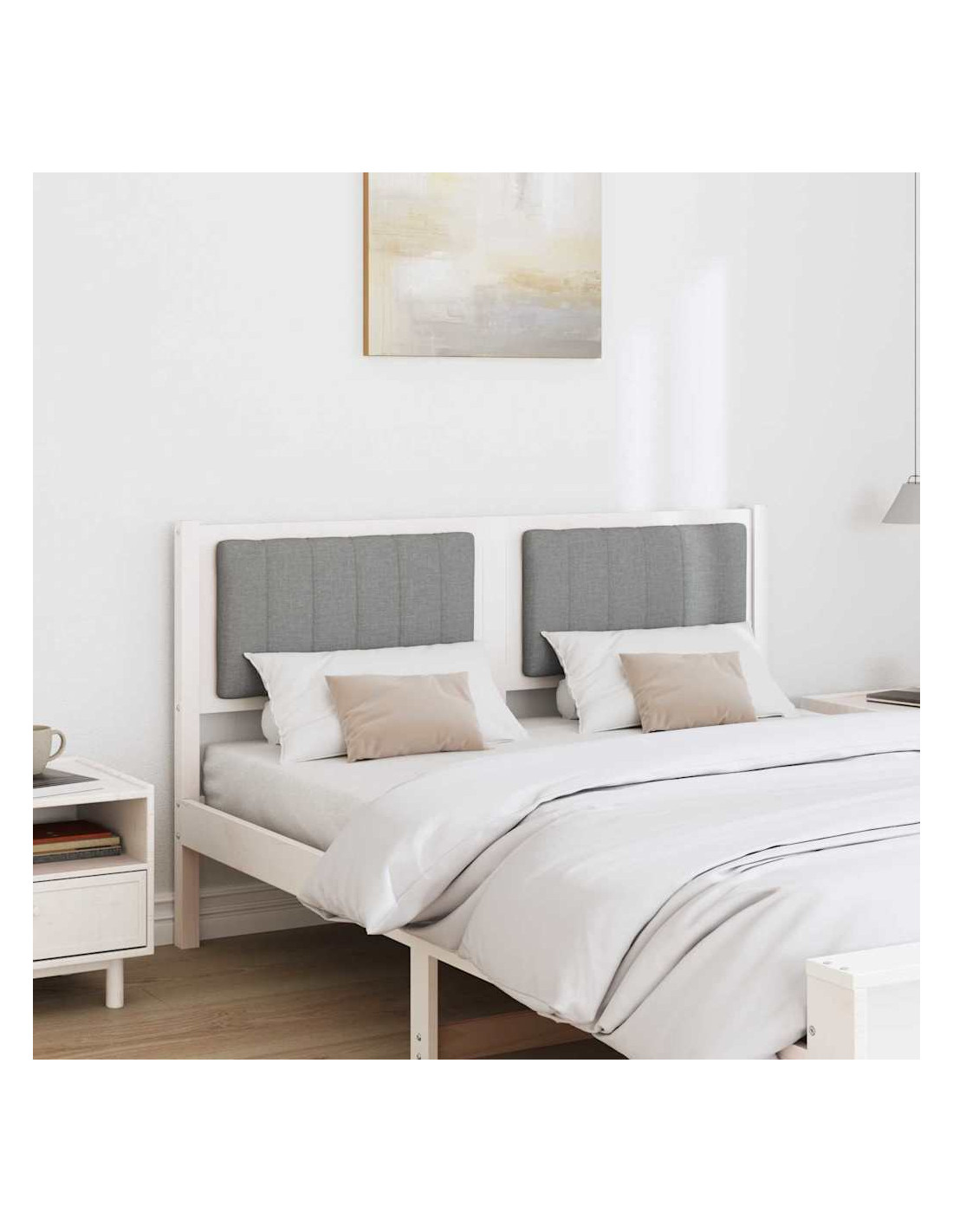 Questa testiera imbottita, realizzata in legno massello di pino, aggiunge un tocco di classe alla tua camera da letto. Con un design moderno che parla di semplicità e funzionalità, è perfetta per chi ama le linee pulite e la decorazione minimale. Che la metti in una grande suite o in una camera per gli ospiti, questa testiera migliora l'atmosfera e ti offre il supporto e il comfort di cui hai bisogno.