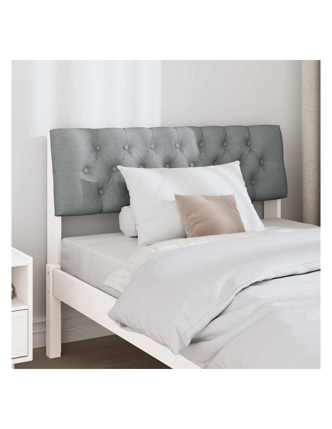 - Tessuto imbottito soffice La testata è coperta di un tessuto morbido e lussuoso al tatto. Questo materiale non solo rende più comoda la testata, ma aggiunge anche un tocco di classe. È perfetta per le camere da letto, poiché il rivestimento di tessuto si abbina a ogni decorazione, rendendola ideale per un relax accogliente o per leggere prima di dormire.