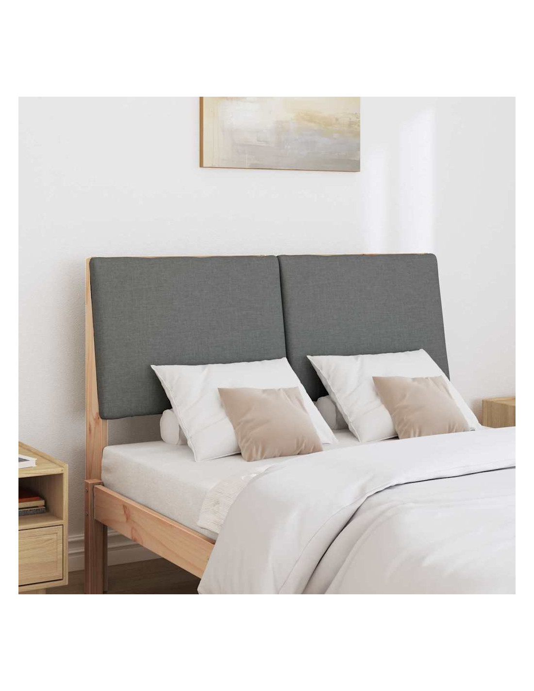 - Materiale di Imbottitura Moderna: La testiera ha un'imbottitura in tessuto premium che le dà un aspetto lussuoso. È anche resistente alle macchie, quindi resta sempre fresca. Questo materiale è scelto per il comfort e l'eleganza, aggiungendo un tocco sofisticato alla tua camera pur essendo pratico per l'uso quotidiano.
