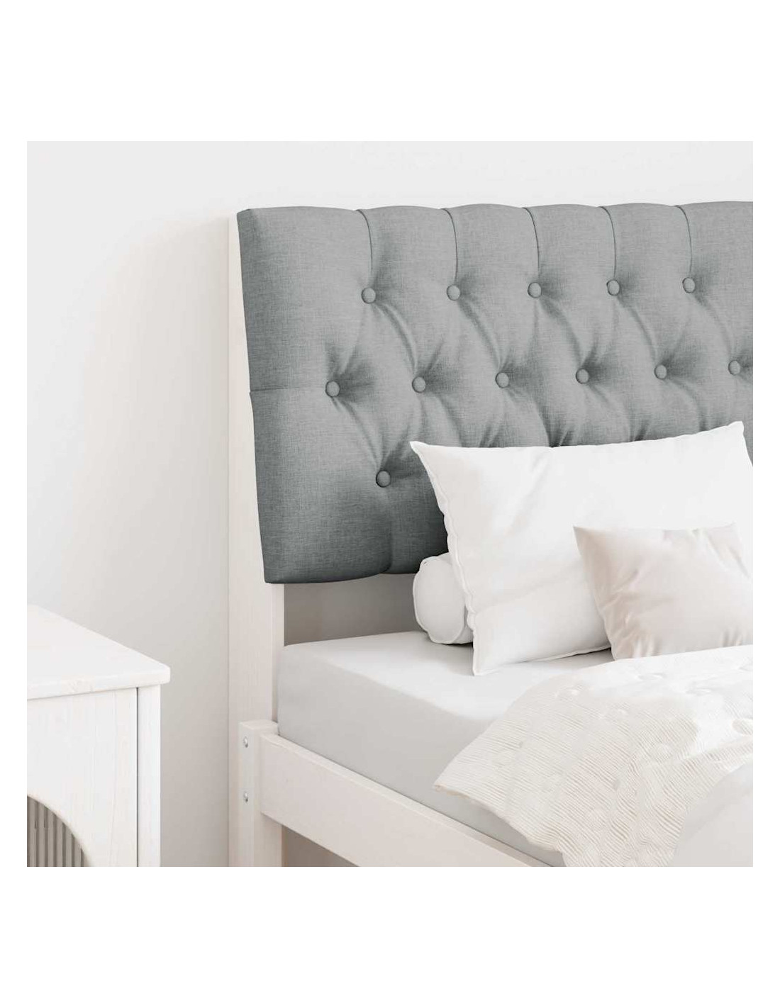 - Materiali: Costruita in legno massello di pino di alta qualità, questa testata offre supporto solido e durabilità. La finitura legnosa aggiunge un elemento naturale, mentre la tappezzeria in tessuto offre una superficie soffice e resistente alle macchie. Questo mix la rende una scelta top per chi cerca eleganza e funzionalità nella camera da letto.