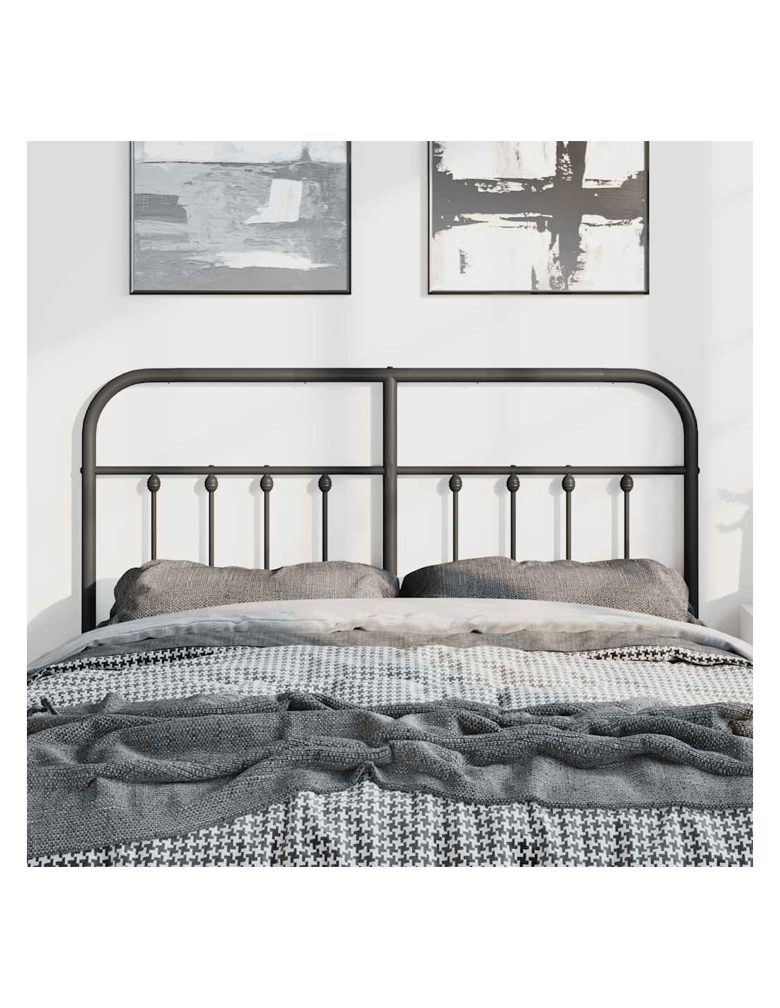- Robusta struttura in metallo: La testiera del letto è realizzata in acciaio verniciato a polvere. L'acciaio è un materiale eccezionalmente duro e resistente, e offre straordinaria robustezza e stabilità. La verniciatura a polvere dell'acciaio crea uno strato protettivo contro l'usura.