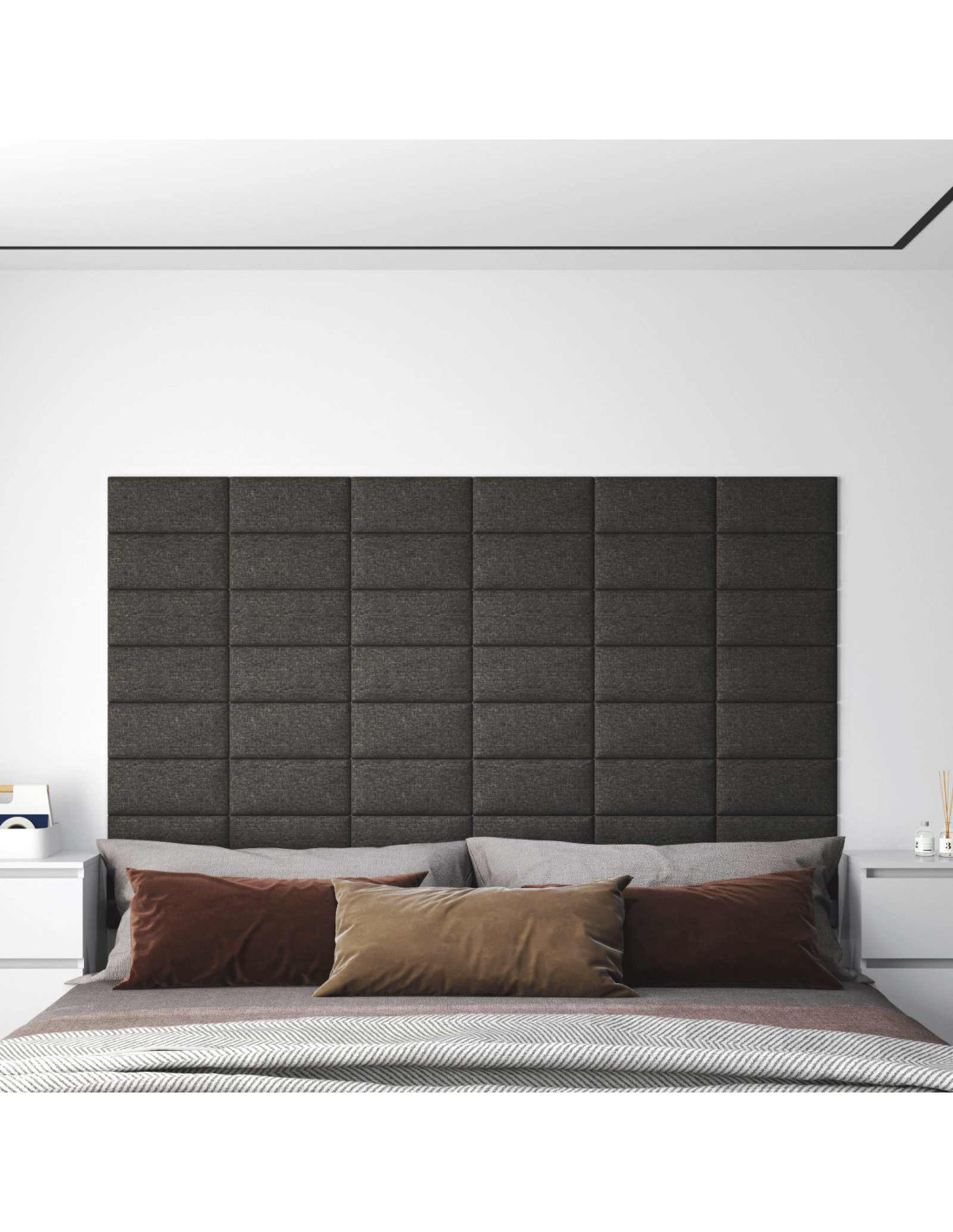 - Tessuto e legno ingegnerizzato: Realizzata con una superficie in tessuto e una base in legno ingegnerizzato, la testiera si presenta solida e ha un aspetto raffinato, perfetta per le pareti della camera da letto.