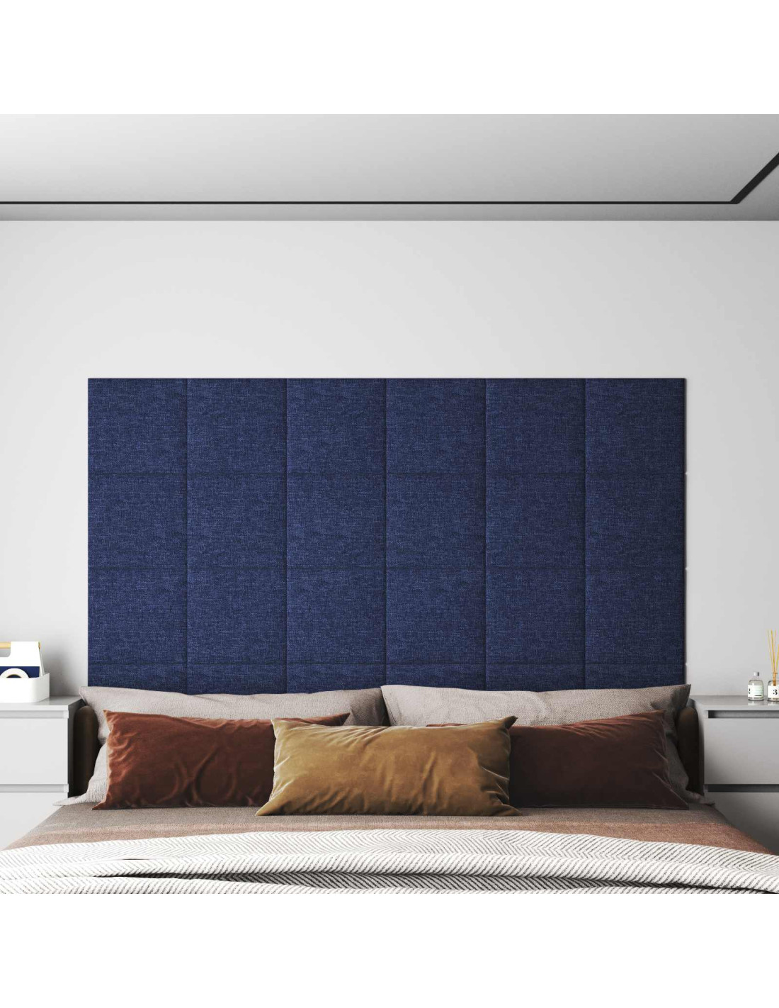 - Tessuto e legno ingegnerizzato: Realizzata con una superficie in tessuto e una base in legno ingegnerizzato, la testiera si presenta solida e ha un aspetto raffinato, perfetta per le pareti della camera da letto.