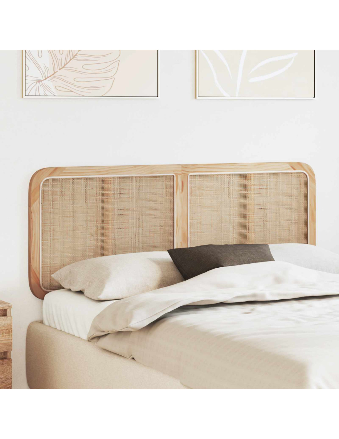 Questa testiera in legno di pino porta un tocco di eleganza a qualsiasi camera da letto, grazie alla combinazione di legno massello di pino e materiali in rattan, offrendo un'atmosfera naturale e accogliente. La sua forma rettangolare e semplice è ideale per interni moderni che puntano sulla funzionalità, adattandosi facilmente a diversi stili di decorazione. Perfetta per chi vuole aggiungere un elemento artigianale ispirato alla natura, questa testiera è sia pratica che decorativa.