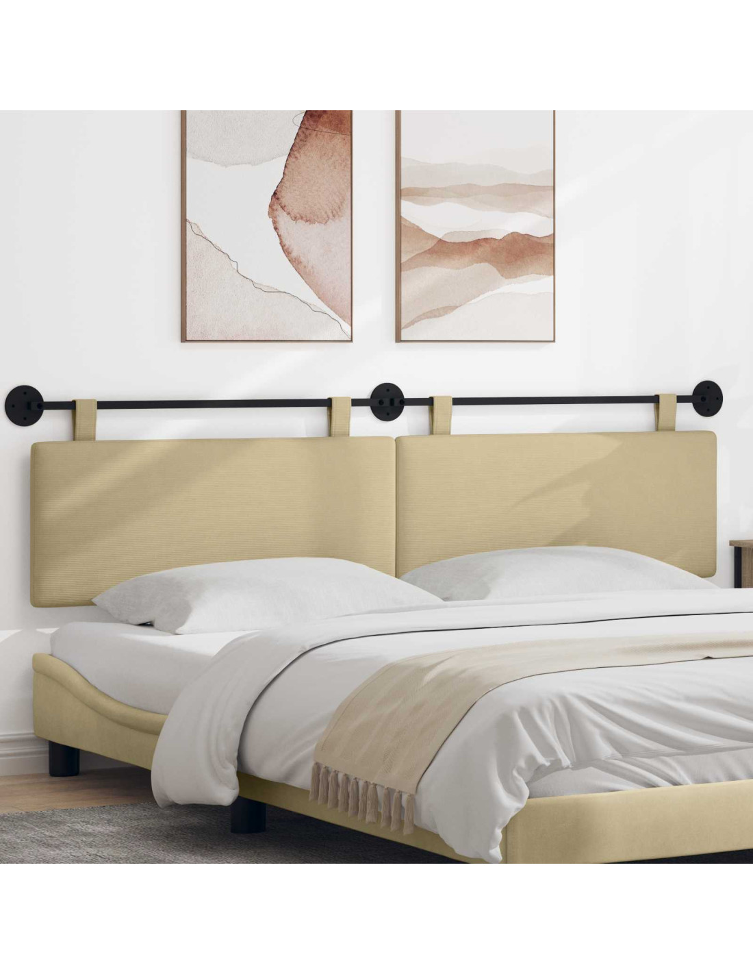 - Installazione flessibile Con le cinghie appese, questa testiera si monta facilmente al muro, garantendo stabilità e un posizionamento sicuro. Questo metodo non solo ottimizza lo spazio, ma offre anche un aspetto snello, rendendola una scelta pratica.
