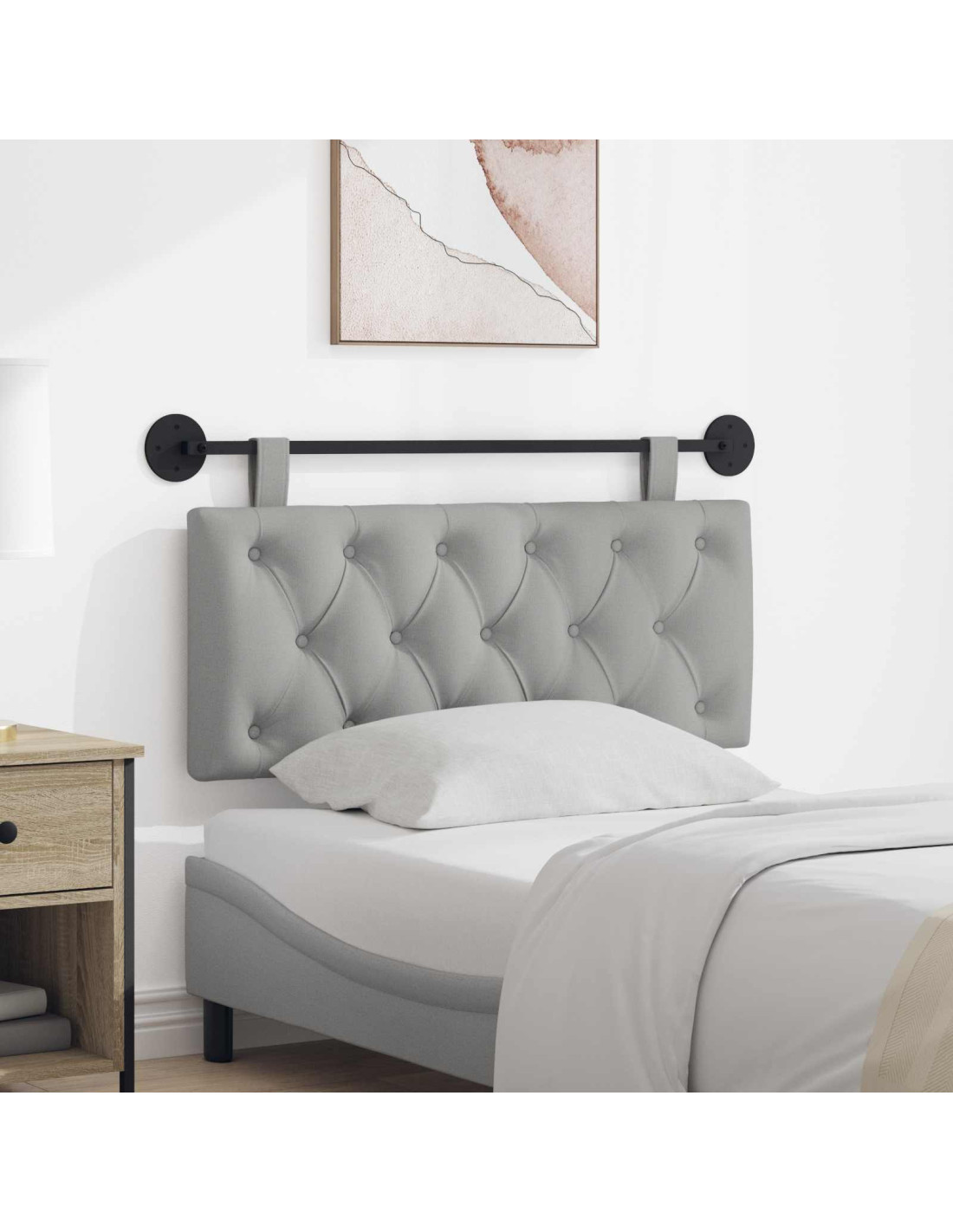 Questa testiera a sospensione è versatile e offre sia funzionalità che stile. Puoi usarla come testiera o come comodo schienale in vari spazi. Il suo design moderno ha linee pulite e una decorazione minimale, perfetta per mantenere un look elegante ovunque. Con il suo motivo a bottoni, emana lusso e riesce a integrarsi senza sforzo in camere da letto, sale da pranzo o ingressi. La morbida imbottitura crea un'atmosfera accogliente, rendendola l'aggiunta perfetta a ogni casa. Materiali di Qualità: La testiera è realizzata in tessuto morbido al tatto, imbottito in schiuma per garantire comfort. Il telaio in legno ingegnerizzato assicura robustezza e lunga durata. Mette a disposizione un comfort duraturo, rendendola una scelta sicura per l'uso quotidiano. Componenti Inclusi: Questa testiera include un binario in metallo verniciato a polvere e due piastre metalliche, per un'installazione semplice. Le lunghe cinture rimovibili ne migliorano la praticità, mentre gli accessori per l'assemblaggio garantiscono un montaggio facile, perfetta per ogni situazione. Design Sospeso Raffinato: Con montaggio a parete, questa testiera ottimizza lo spazio. Riduce il disordine a terra e migliora l’aspetto della stanza mantenendo tutto in ordine. Ideale per appartamenti o stanze piccole dove ogni centimetro conta. Uso Versatile: Questa testiera è perfetta non solo per le camere da letto, ma anche come supporto per sale da pranzo o ingressi. Adatta a vari stili e usi, sia per riposare che per dare il benvenuto agli ospiti. Istruzioni per la Cura: Facile da mantenere, basta pulirla con un panno asciutto per preservare il suo fascino. Questa facilità nella cura la rende un'opzione elegante senza complicazioni nella pulizia.