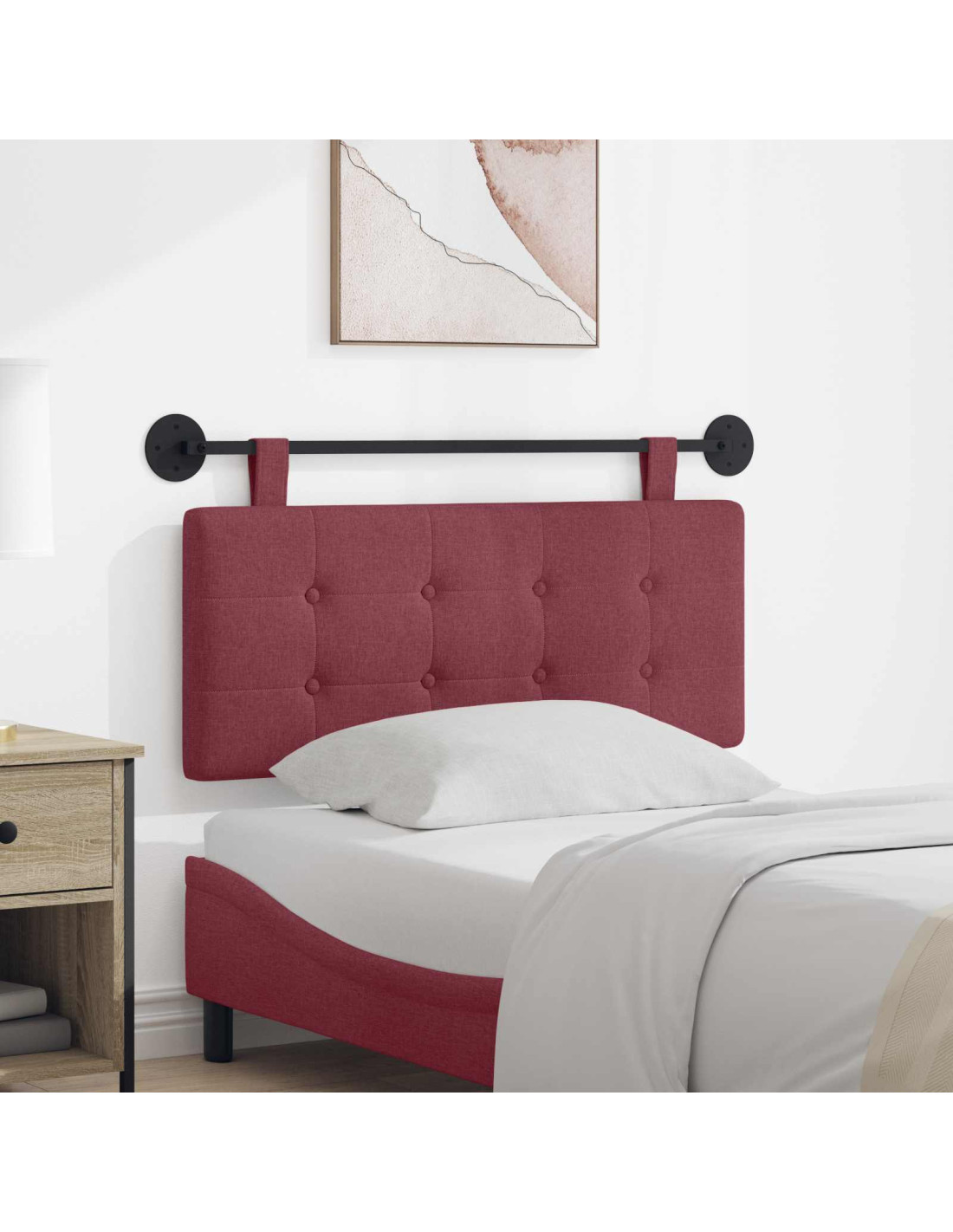Questa testiera sospesa è una soluzione moderna per rendere qualsiasi camera da letto più bella con il suo design elegante e le sue linee pulite. Ideale per chi vuole aggiungere un tocco di eleganza e funzionalità, trasforma l'aspetto di ogni stanza in un ambiente lussuoso. Perfetta sia per una suite matrimoniale che per una camera per ospiti, fa il doppio lavoro di punto focale e pezzo utile, regalando supporto ed estetica senza compromettere lo stile.