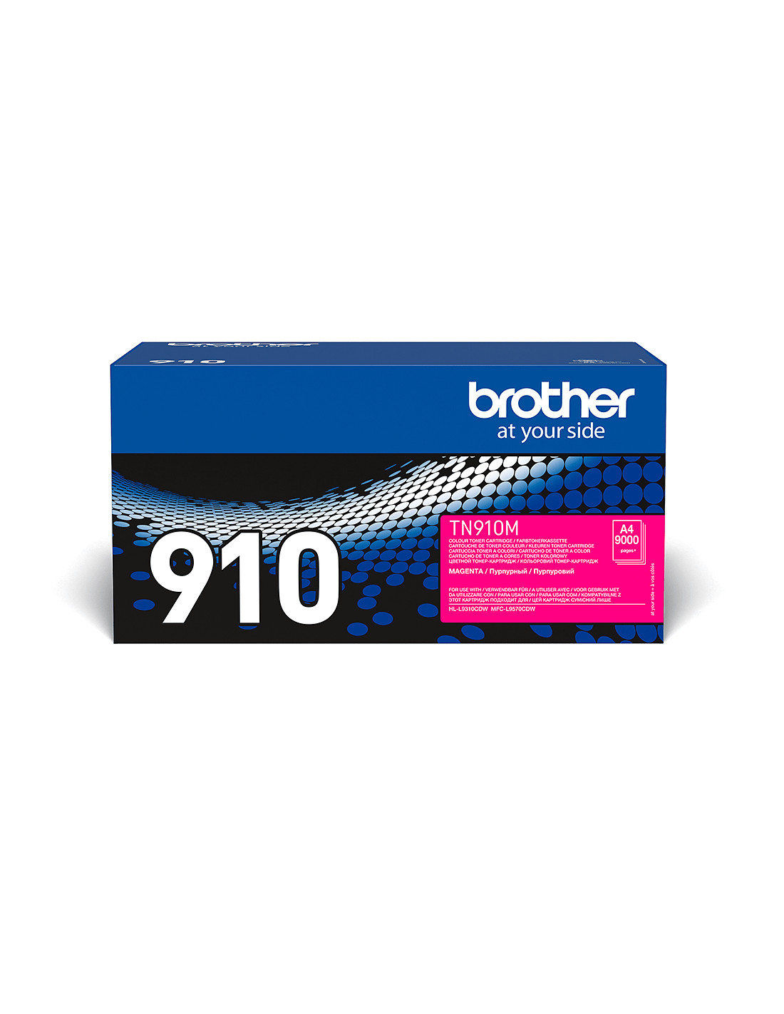 5 validi motivi per scegliere l’originale.1. Garantire elevate prestazioniDispositivo e materiale di consumo originali sono progettati per lavorare in perfetta sinergia: per fare in modo che ogni stampa sia perfetta, la prima quanto l’ultima 2. Qualità della stampa La tecnologia a cera dei toner consente la produzione di stampa di qualità professionale3. Durabilità della stampa fino a 4 volte in più* Dai test effettuati è risultato che i documenti stampati utilizzando materiale di consumo originale durano 4 volte di più* rispetto all’utilizzo di materiale compatibile*di altre polveri - test effettuati nei laboratori Brother4. Risparmio di tempo e denaroL’utilizzo di materiale non originale può causare danni dovuti alla fuoriuscita di polvere di toner, e causare la perdita della garanzia del produttore 5. Minor impatto ambientaleLa conformità alle normative ambientali europee garantisce un minor impatto ambientale dei nostri materiali di consumoPer verificare l’originalità del consumabile, controlla la presenza dell’etichetta di sicurezza olografica sulla confezione e verifica il QR Code con la nostra app SupportCenter.Formulata secondo le rigorose specifiche tecniche di Brother, il toner TN-910M può produrre fino a 9.000 pagine nitide e brillanti.Disponibile per HL-L9310CDW e MFC-L9570CDW.