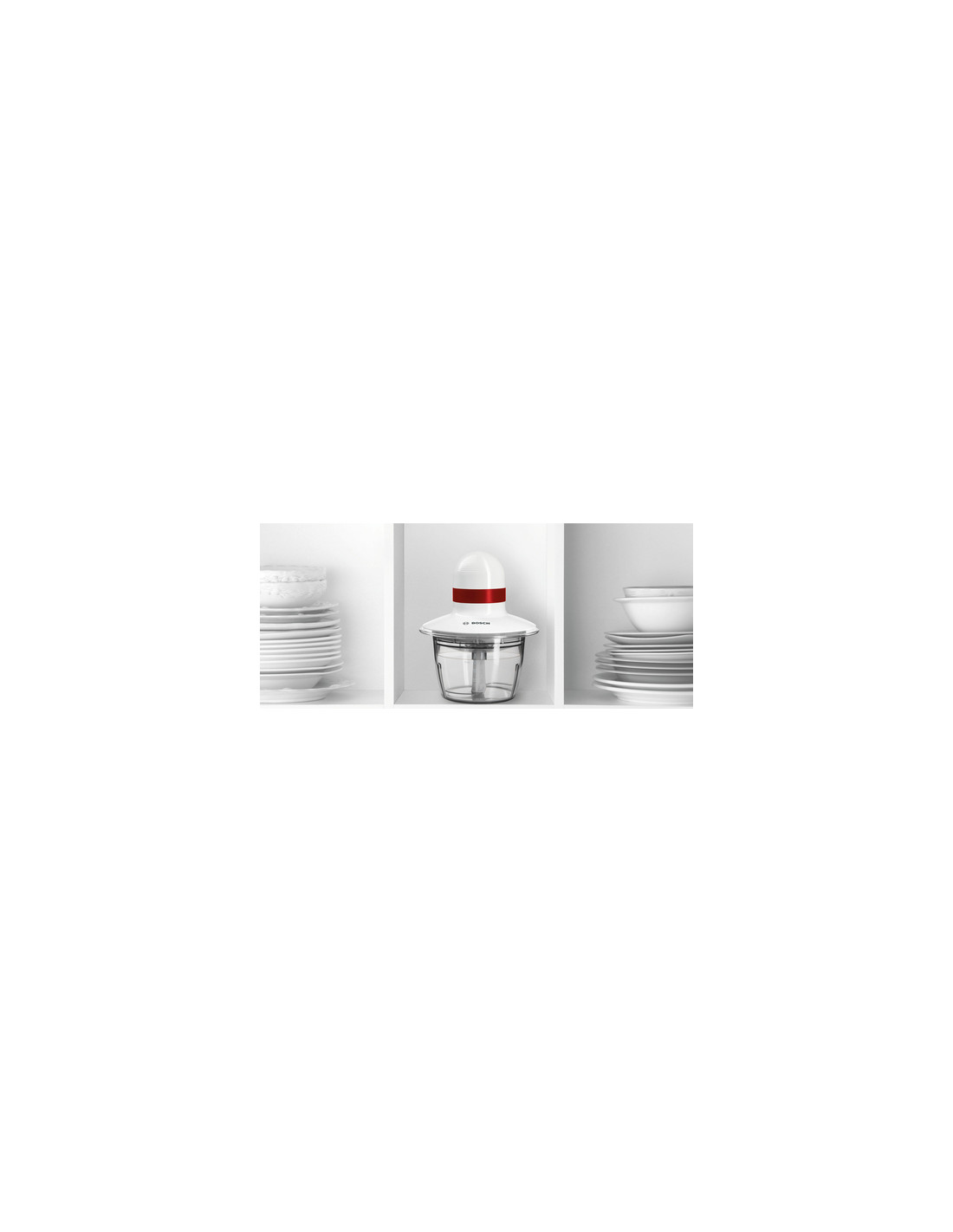 Tritatutto compatto da cucina da 400 W con ciotola da 0,8 L, lame in acciaio inox, corpo in plastica resistente. Ideale per tritare, sminuzzare e miscelare piccoli e medi ingredienti. I pezzi smontabili sono lavabili in lavastoviglie, base antiscivolo per maggiore sicurezza, scala graduata sulla ciotola. Design in tre colori (rosso, bianco, trasparente) che si adatta a cucine moderne.
