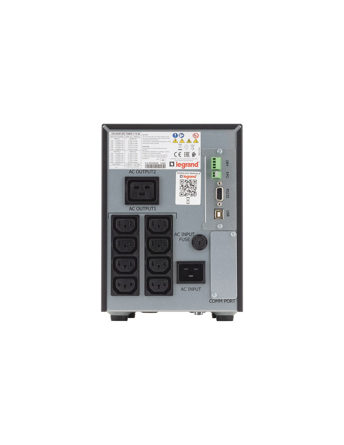Legrand Keor ASI SPE tower 3KVA. Topologia UPS: A linea interattiva, Potenza in uscita: 3 kVA, Potenza in uscita: 2400 W. Tipo di uscita AC: Accoppiatore C13, Accoppiatore C19, Presa di corrente: Accoppiatore C20, Quantità prese AC: 9 presa(e) AC. Tempo di salvataggio minimo a pieno carico: 0,00016 min. Larghezza: 170 mm, Profondità: 438 mm, Altezza: 238 mm
