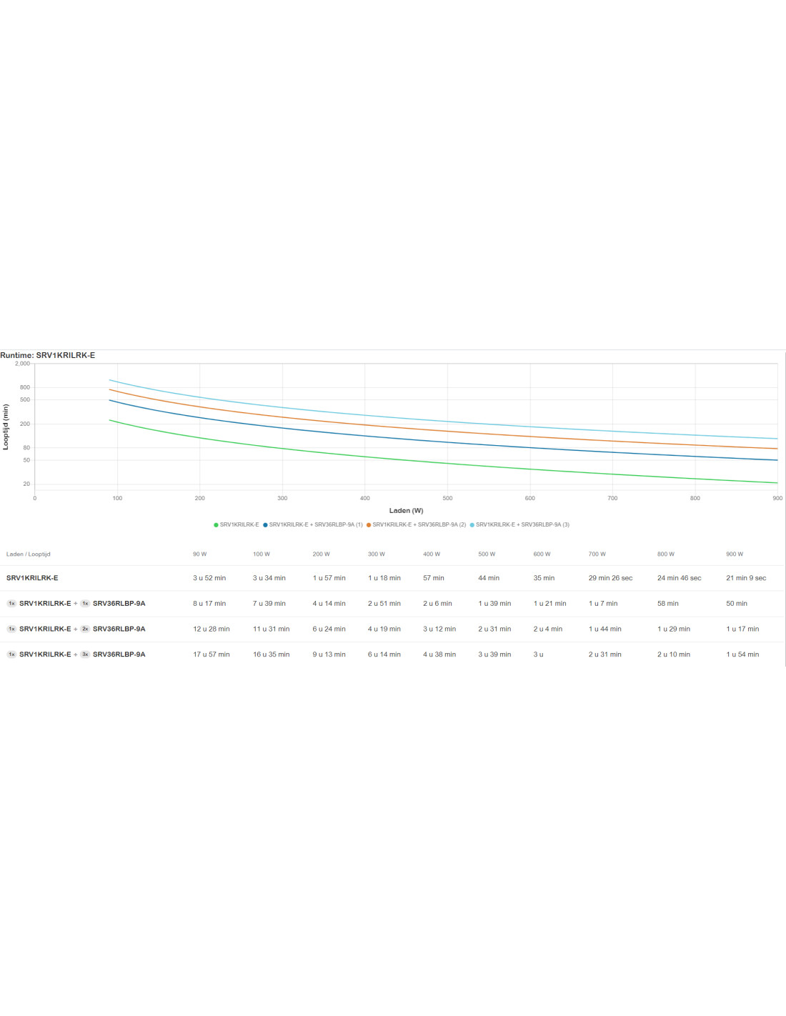APC SRV1KRILRK-E. Potenza in uscita: 1 kVA, Potenza in uscita: 900 W, Forma d'onda: Sinusoidale. Presa di corrente: Accoppiatore C14. Tecnologia batteria: Acido piombo (VRLA), Voltaggio della batteria: 36 V, Tempo di ricarica: 4,5 h. Colore del prodotto: Nero, Capacità di rack: 4U, Codice di protezione internazionale (IP): IP20. Larghezza: 438 mm, Profondità: 412 mm, Altezza: 172 mm