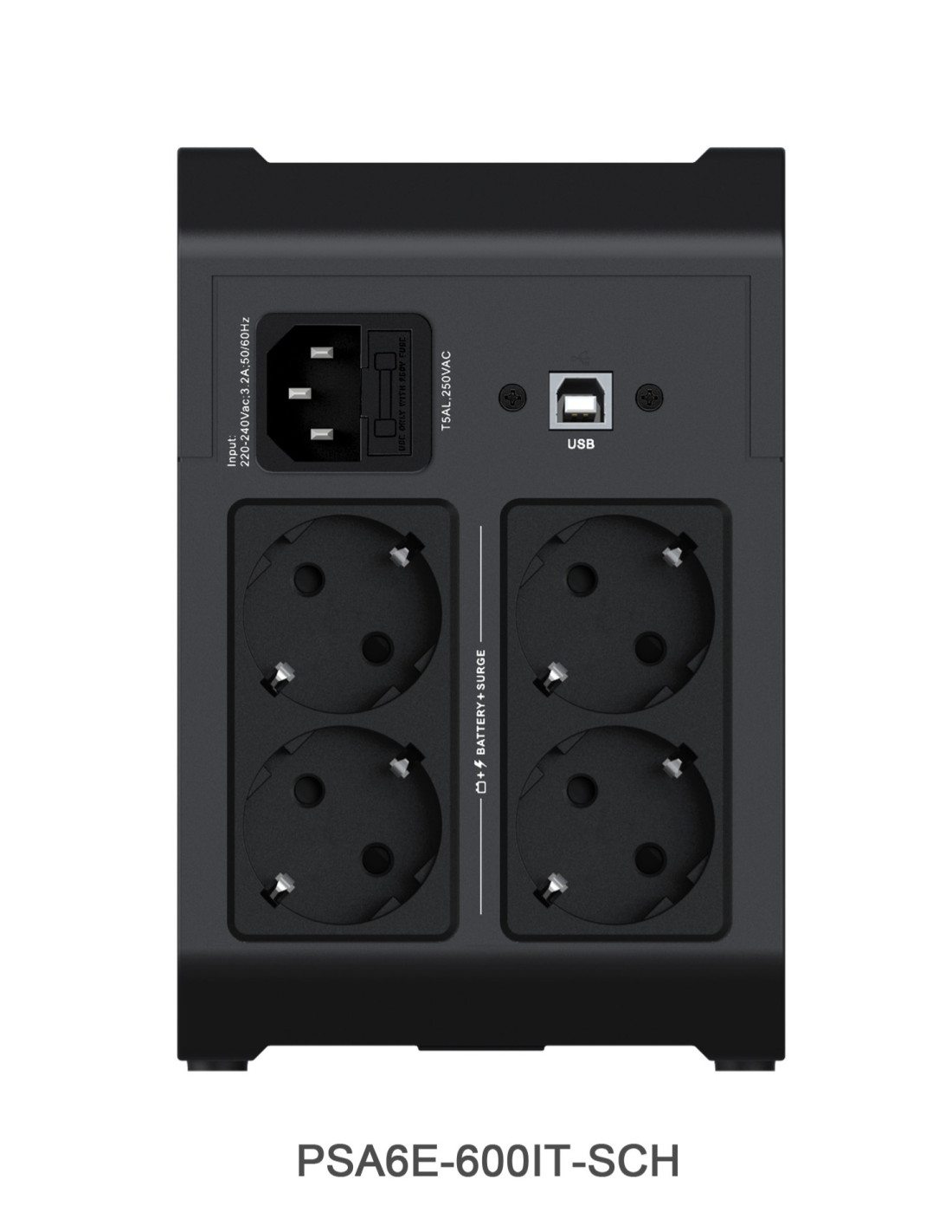 Vertiv PSA6E-600IT-SCH. Topologia UPS: A linea interattiva, Potenza in uscita: 0,6 kVA, Potenza in uscita: 315 W. Quantità prese AC: 4 presa(e) AC. Tecnologia batteria: Acido piombo (VRLA), Tempo di salvataggio minimo a pieno carico: 1 min, Tempo di salvataggio minimo a mezzo carico: 8 min. Colore del prodotto: Nero. Certificati di conformità: REACH, RoHS, WEEE