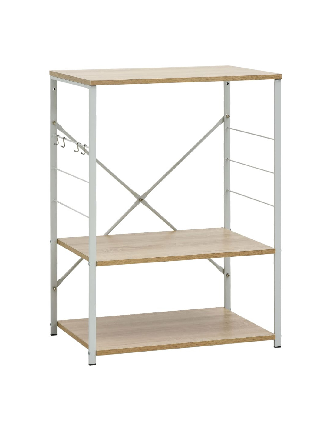 Realizzato in legno multistrato, questo scaffale da cucina è facile da pulire con un panno umido. La struttura in acciaio lo rende antiruggine e ne aumenta la robustezza. Questo scaffale è dotato di 3 ripiani e vi offre un ampio spazio per riporre gli oggetti. Questo mobile include dei ganci laterali per appendere pentole, padelle, utensili, guanti da forno e altro ancora. Potete utilizzarlo in soggiorno o in ufficio per esporre i vostri oggetti da collezione, cornici di foto, e così via.