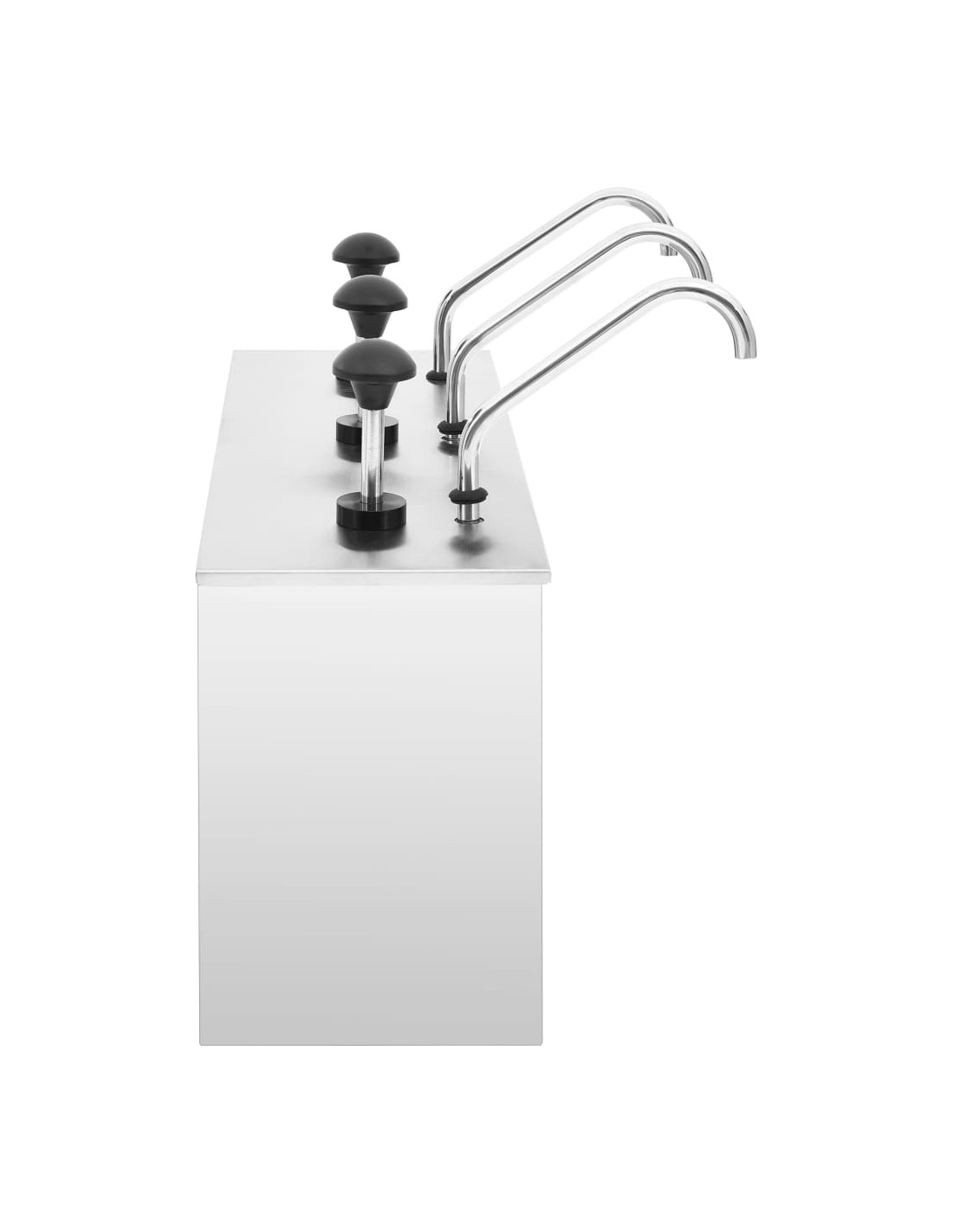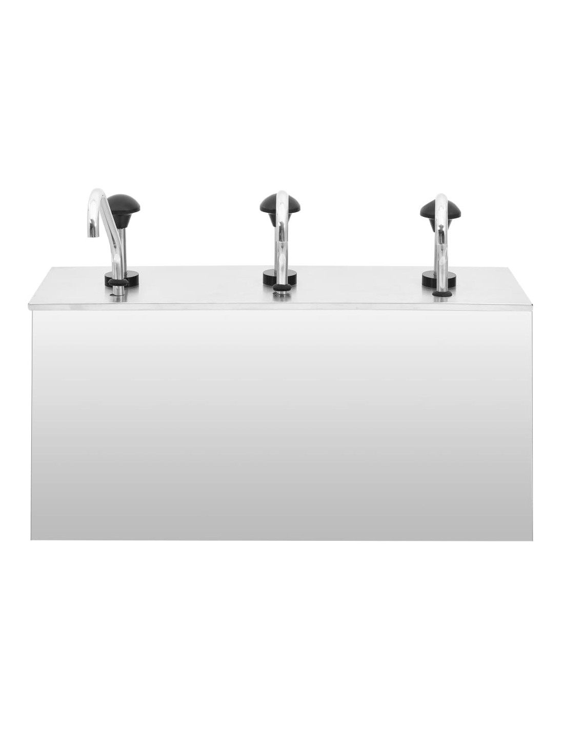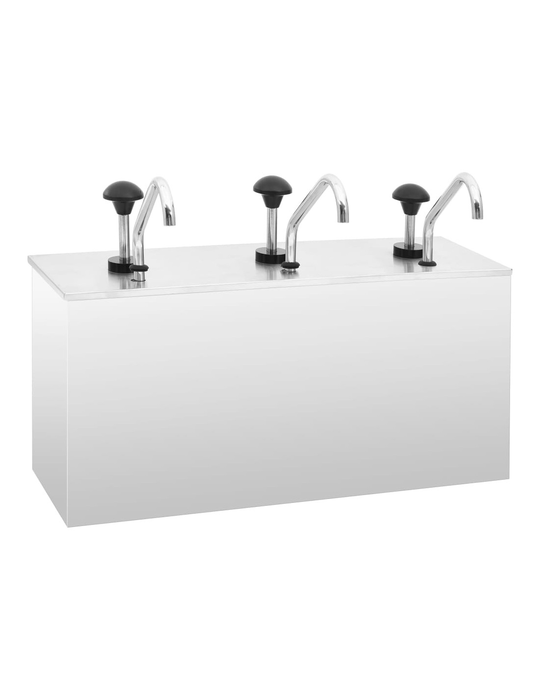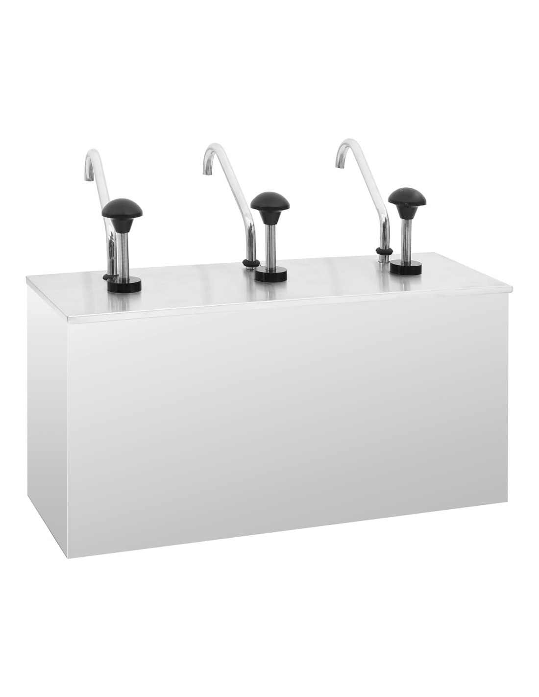 Questo distributore di condimenti con pompa è realizzato in acciaio inossidabile di alta qualità. Tutte le parti a contatto con gli alimenti sono realizzate in acciaio inossidabile 304. Quindi questo distributore non arrugginisce rapidamente ed è facile da pulire. Inoltre, con una grande capacità, questo distributore può contenere una quantità sufficiente di salse diverse come maionese, ketchup, salsa di soia, ecc. È possibile conservare salse sufficienti con la sua capacità di 3 x 3,5 L litri.