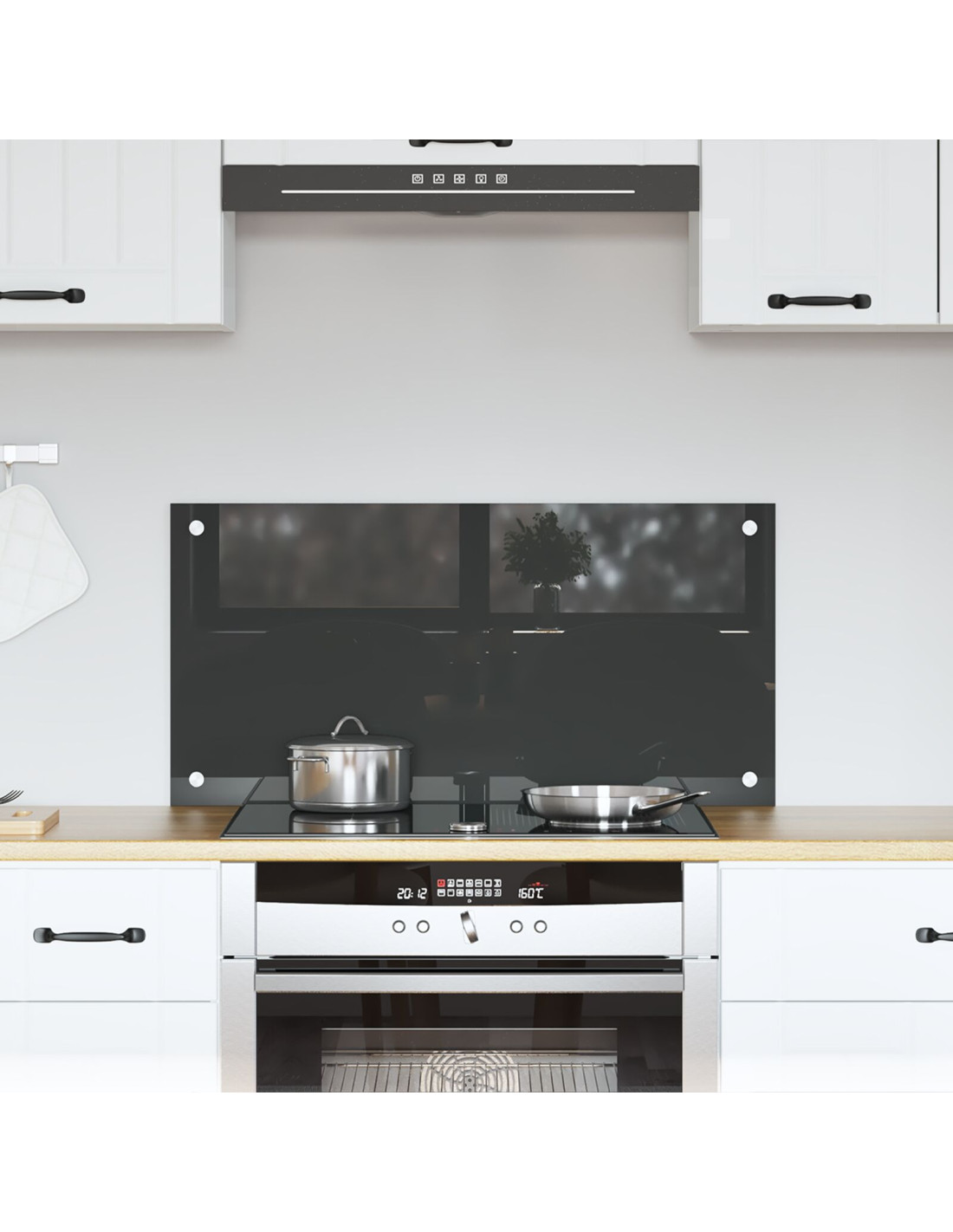 - Materiale in vetro temperato: Questo backsplash è fatto di vetro temperato di alta qualità, elegante e resistente. Regge fino a 240 gradi senza rompersi, fornendo protezione contro il calore e diventando un'aggiunta duratura al tuo arredamento cucina.