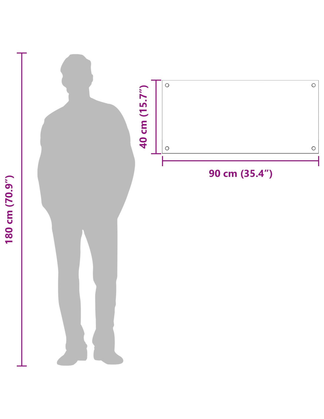 - Dimensioni complessive: 90 x 40 x 0,6 cm (L x P x A)
