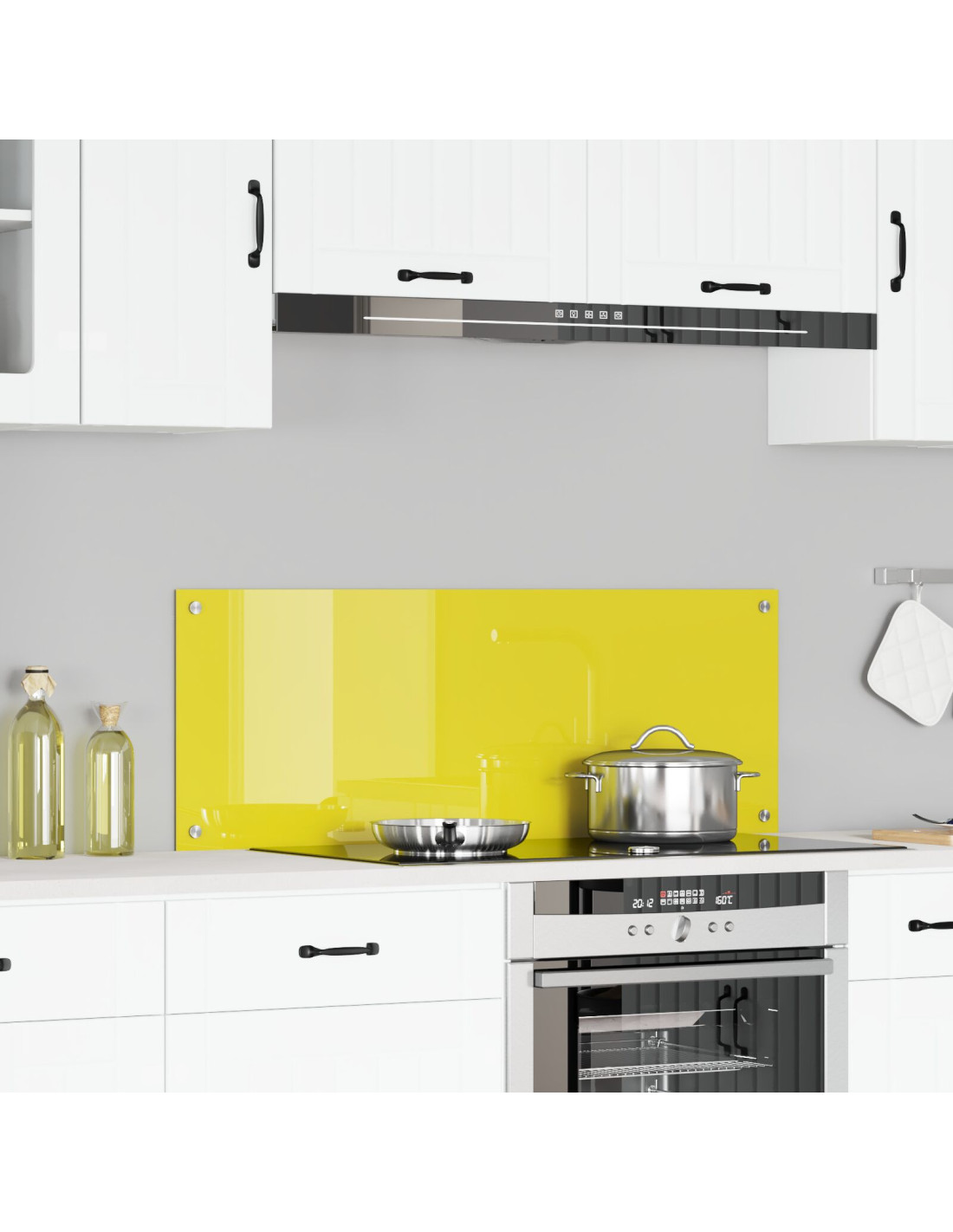 - Materiale in vetro temperato: Questo backsplash è fatto di vetro temperato di alta qualità, elegante e resistente. Regge fino a 240 gradi senza rompersi, fornendo protezione contro il calore e diventando un'aggiunta duratura al tuo arredamento cucina.