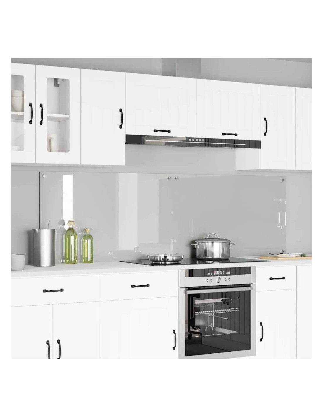 - Costruzione in vetro temperato: Questo backsplash è in vetro temperato di alta qualità, robusto e durevole. La sua finitura chiara aggiunge un tocco elegante che si adatta a qualsiasi cucina.