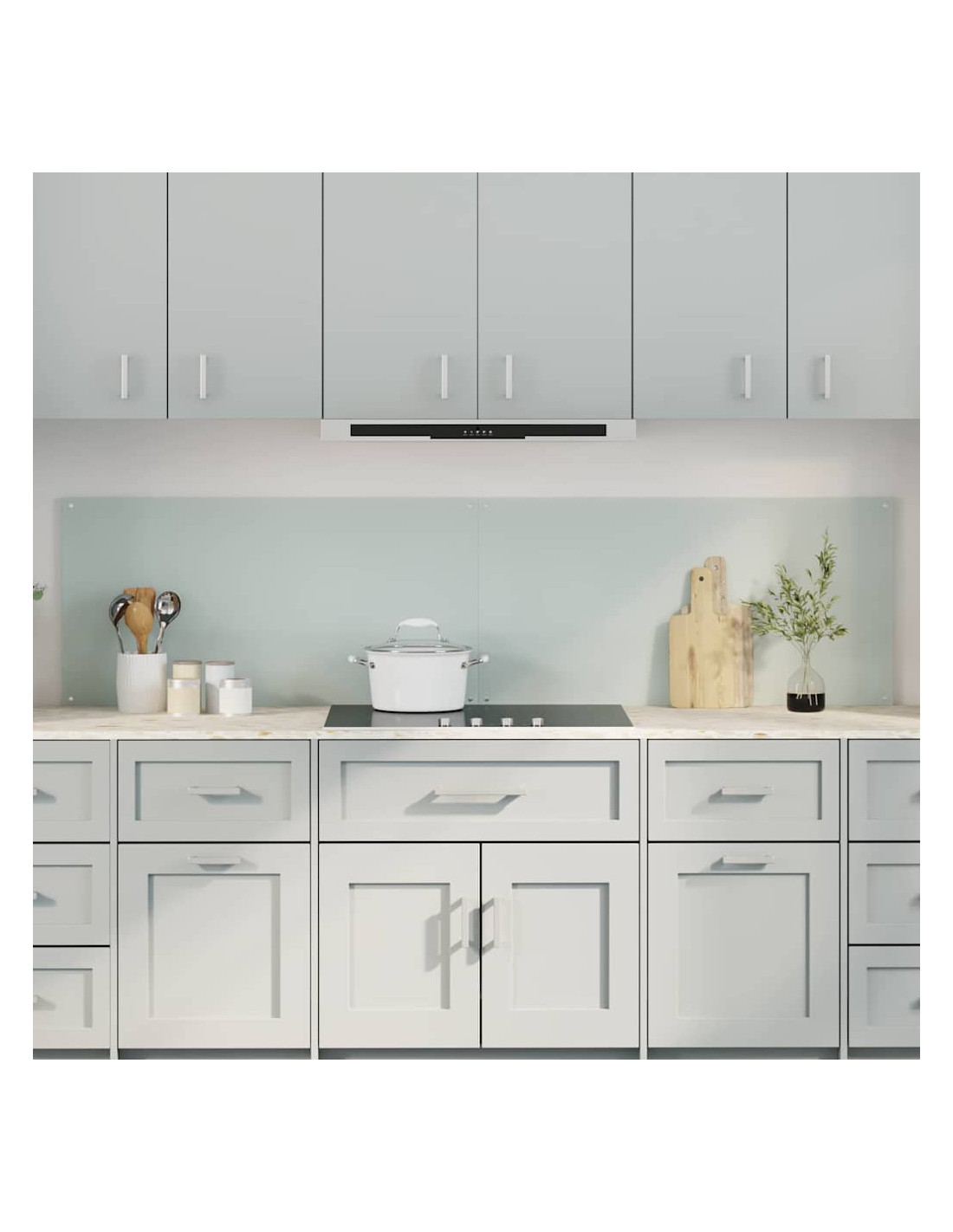 - Materiale in vetro temperato: Questo backsplash è fatto di vetro temperato di alta qualità, elegante e resistente. Regge fino a 240 gradi senza rompersi, fornendo protezione contro il calore e diventando un'aggiunta duratura al tuo arredamento cucina.