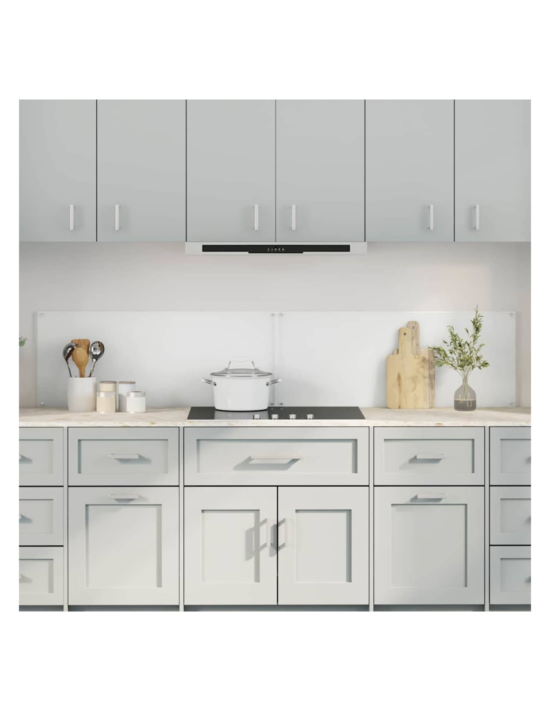 - Materiale in vetro temperato: Questo backsplash è fatto di vetro temperato di alta qualità, elegante e resistente. Regge fino a 240 gradi senza rompersi, fornendo protezione contro il calore e diventando un'aggiunta duratura al tuo arredamento cucina.