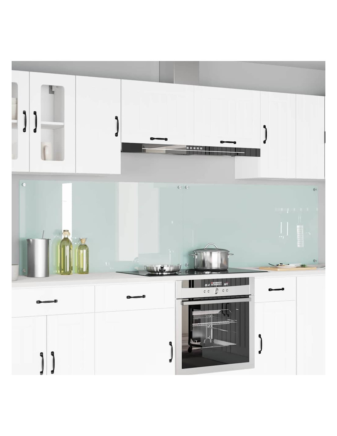 - Materiale in vetro temperato: Questo backsplash è fatto di vetro temperato di alta qualità, elegante e resistente. Regge fino a 240 gradi senza rompersi, fornendo protezione contro il calore e diventando un'aggiunta duratura al tuo arredamento cucina.