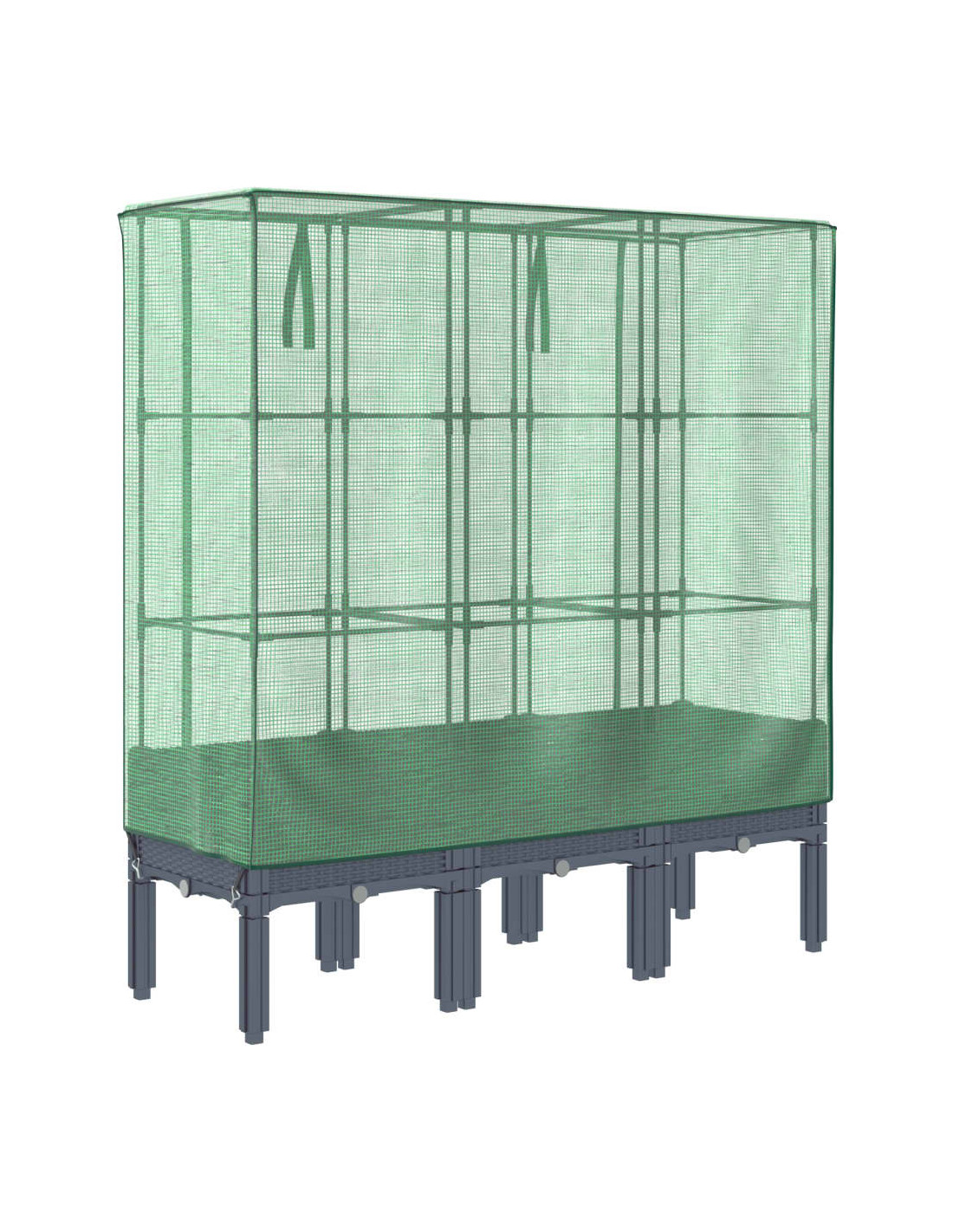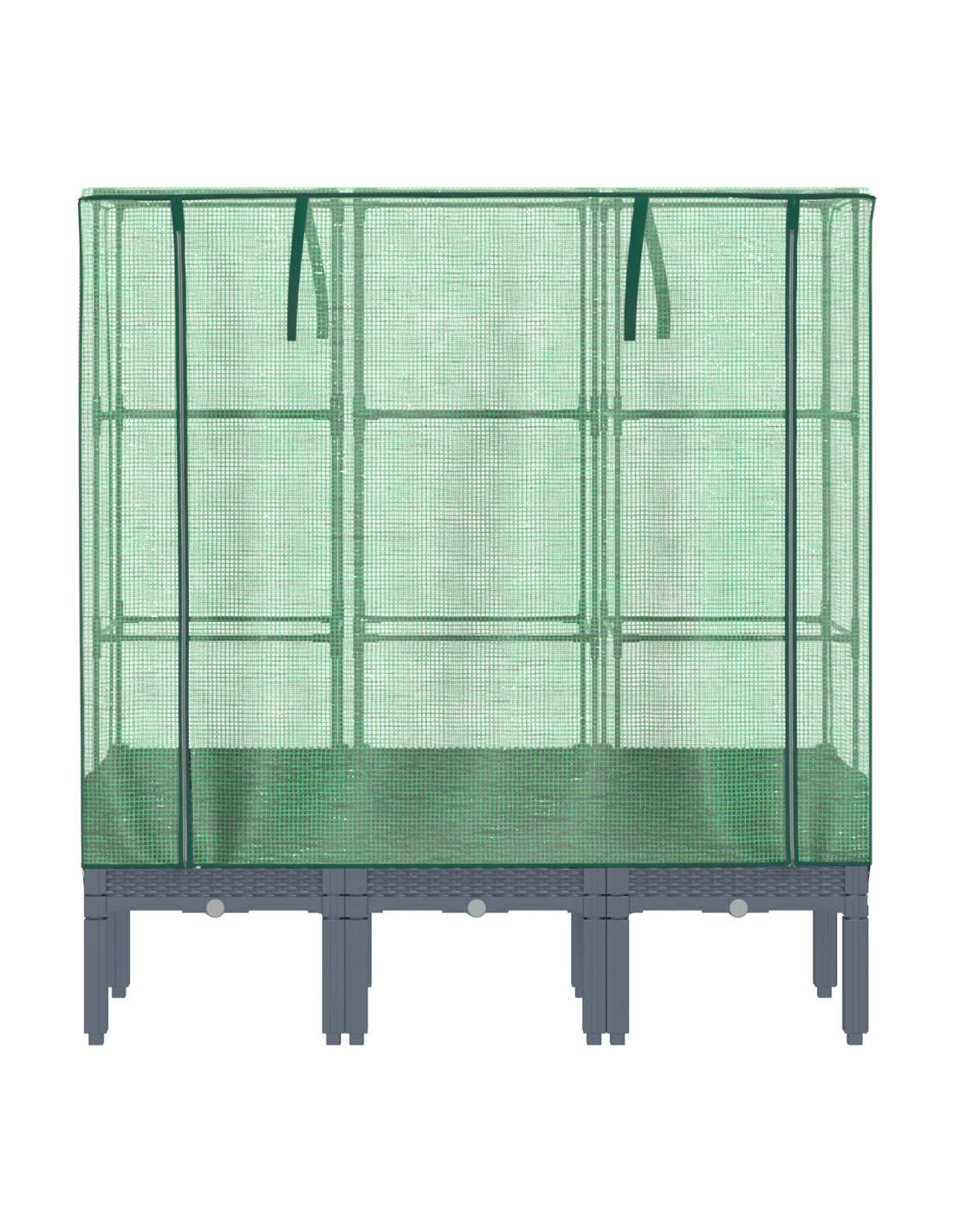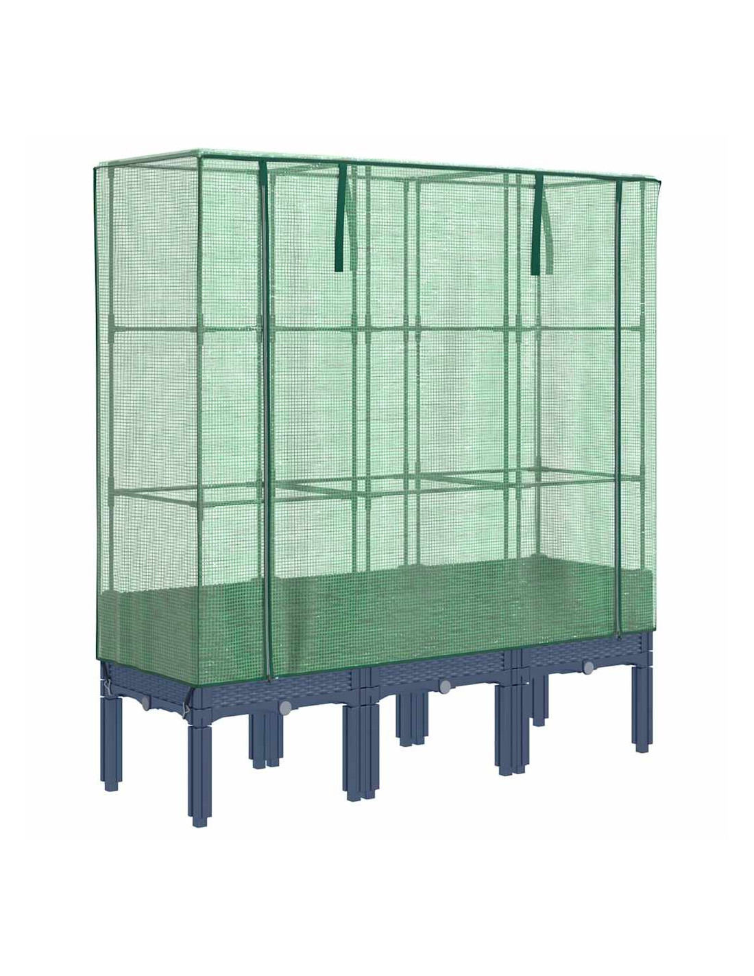 - Copertura funzionale: il letto rialzato è dotato di una copertura in polietilene resistente all'acqua che protegge le piante dalle temperature estreme e tiene lontani insetti, uccelli e piccoli animali.