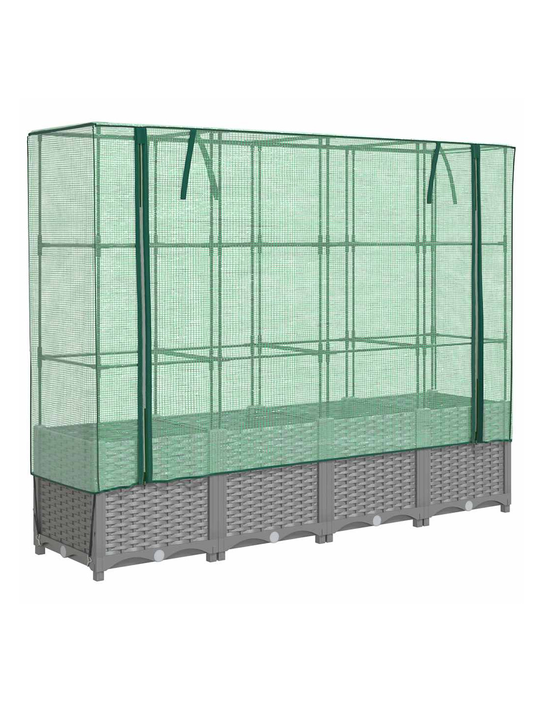 - Copertura funzionale: il letto rialzato è dotato di una copertura in polietilene resistente all'acqua che protegge le piante dalle temperature estreme e tiene lontani insetti, uccelli e piccoli animali.