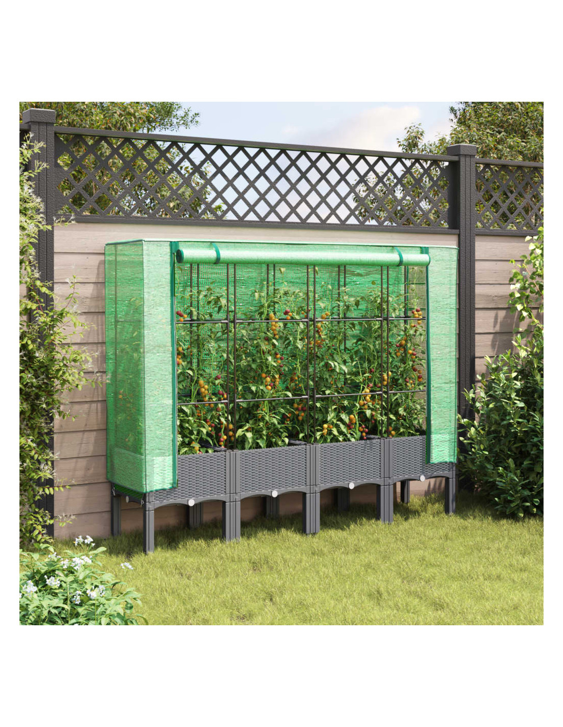 - Struttura robusta: il letto rialzato, realizzato in polipropilene, è dotato nella parte superiore di una robusta struttura in tubi di ferro, che consente alle piante di crescere e arrampicarsi al suo interno.