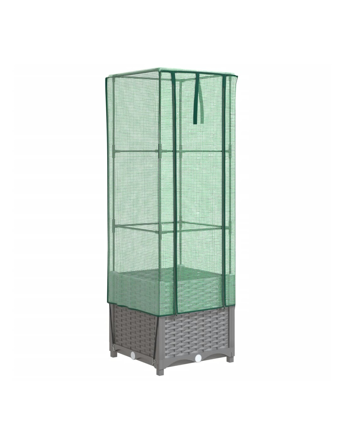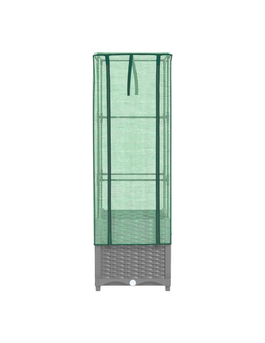 - Copertura funzionale: il letto rialzato è dotato di una copertura in polietilene resistente all'acqua che protegge le piante dalle temperature estreme e tiene lontani insetti, uccelli e piccoli animali.