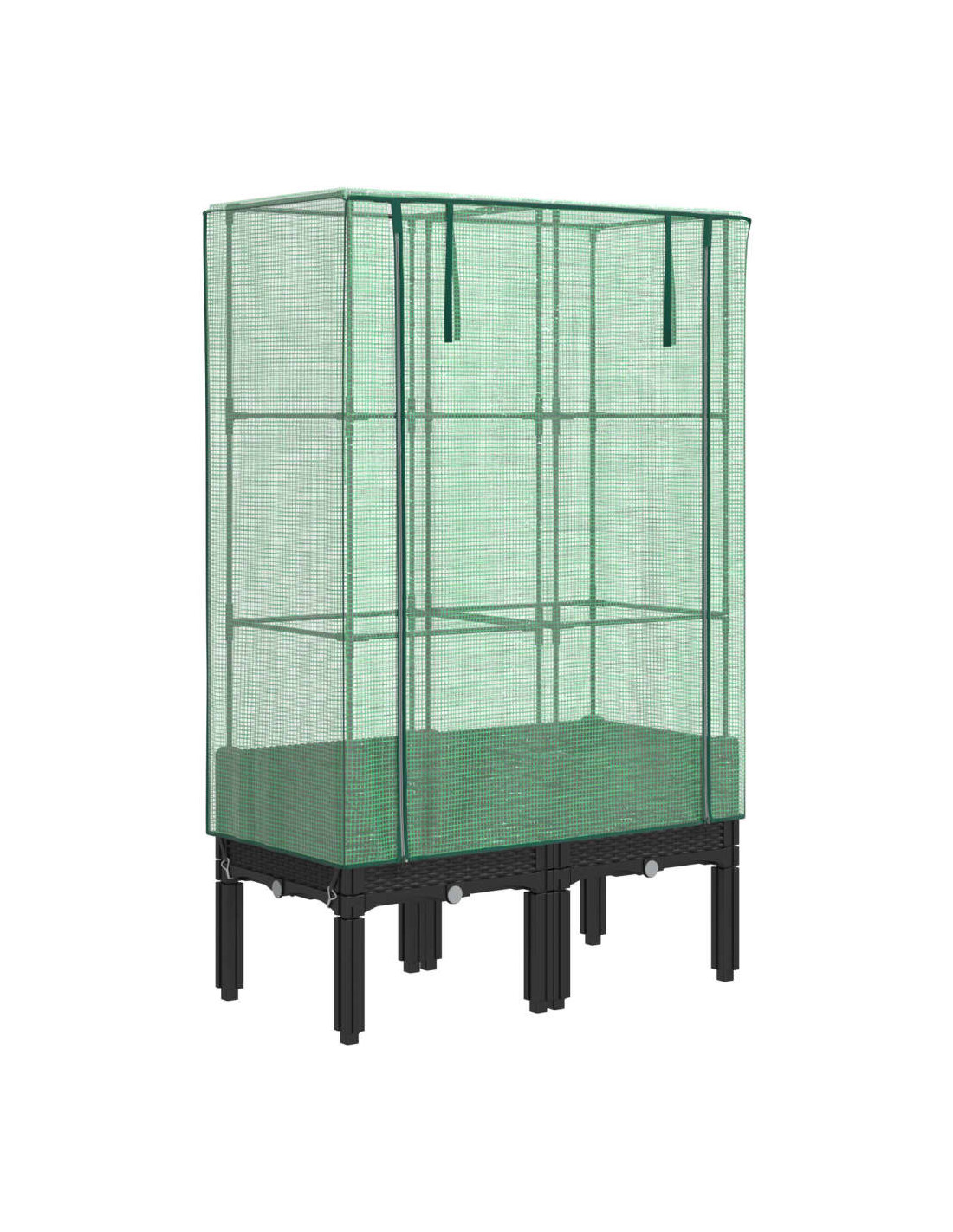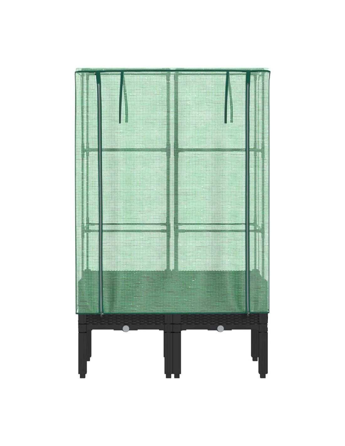 - Copertura funzionale: il letto rialzato è dotato di una copertura in polietilene resistente all'acqua che protegge le piante dalle temperature estreme e tiene lontani insetti, uccelli e piccoli animali.