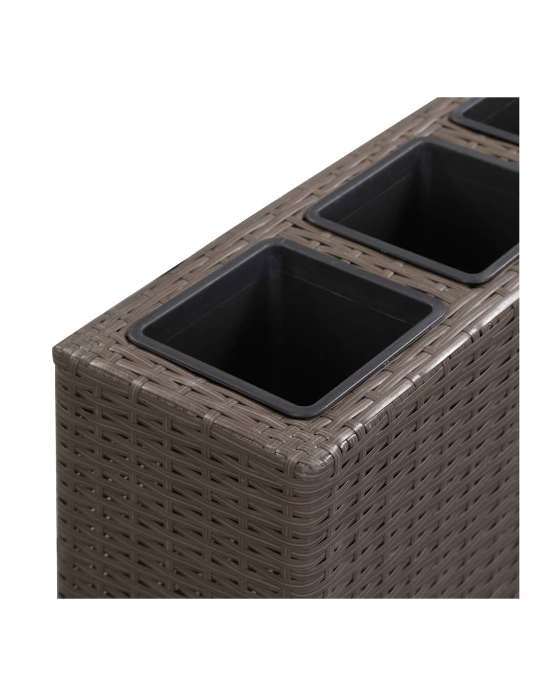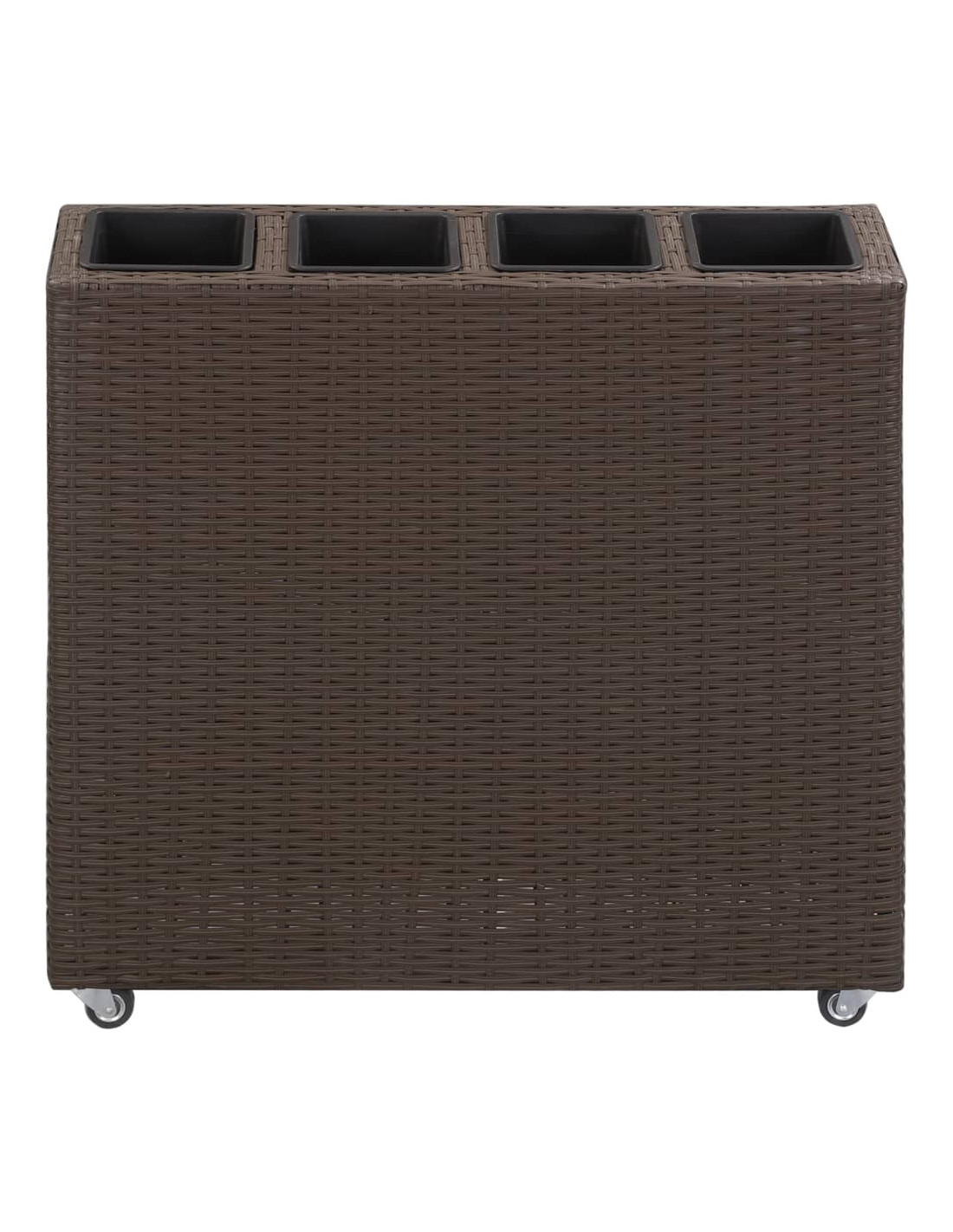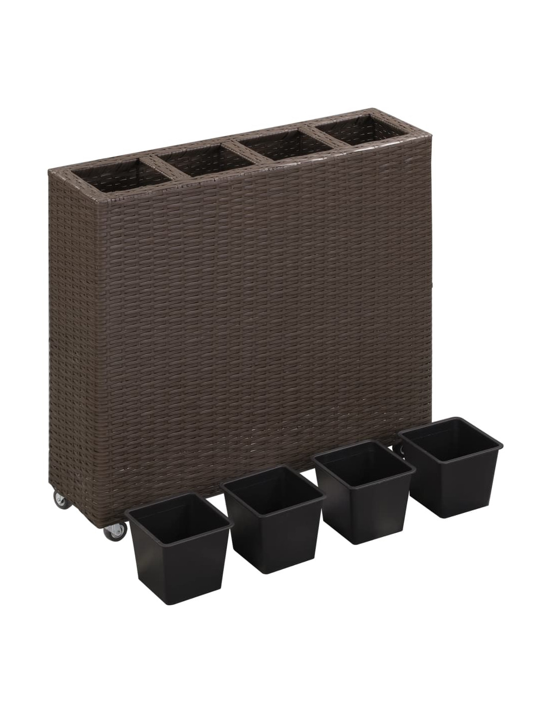 Realizzata in polyrattan robusto resistente all'acqua, questa fioriera sarà un'aggiunta perfetta al vostro spazio esterno. La sua struttura a tessitura stretta produce una finitura liscia e una grande stabilità. I 4 contenitori all'interno del set garantiscono una lunga durata. Potete mettere tutti i tipi di piante verdi e fiori nei vasi. Inoltre, il design con ruote può offrire comodità. Preparatevi ad avere un po' d'aria fresca dal vostro giardino, terrazza e balcone con le nostre bellissime fioriere!