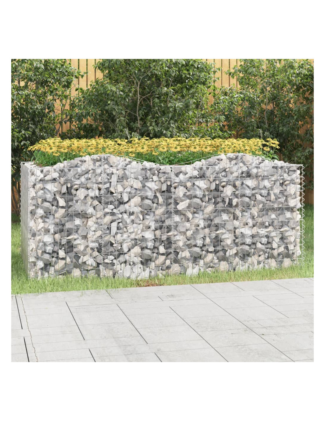 Questo gabbione ad arco con letto rialzato è un modo conveniente per delimitare un confine robusto per i fiori nel vostro giardino e patio.