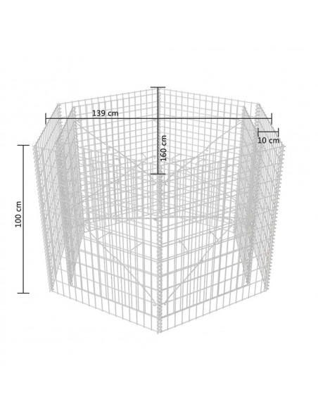 La robusta fioriera è stata progettata per essere riempita di rocce o ghiaia. Realizzata in acciaio zincato, resistente agli agenti atmosferici e alla ruggine, risulta molto stabile e robusta. La griglia della maglia è costituita dalla saldatura di fili trasversali e longitudinali ad ogni incrocio per garantire una maggiore stabilità.