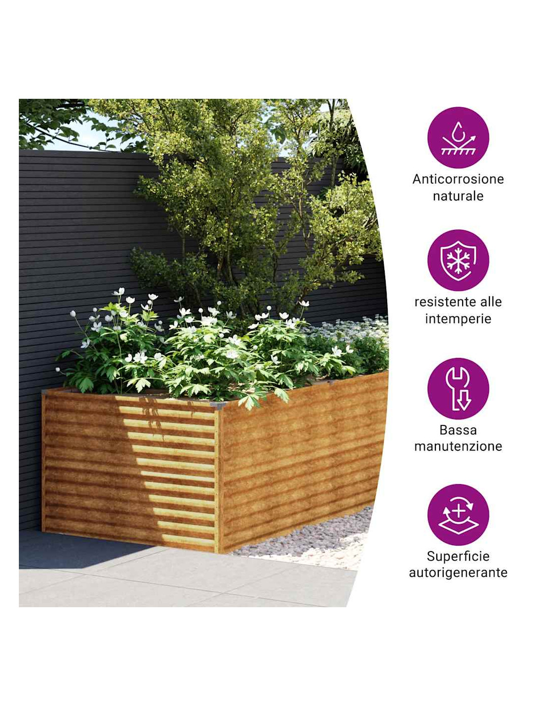 - Funzione decorativa: La fioriera può contenere le vostre piante o i vostri fiori, quindi è ideale come decorazione del vostro giardino.