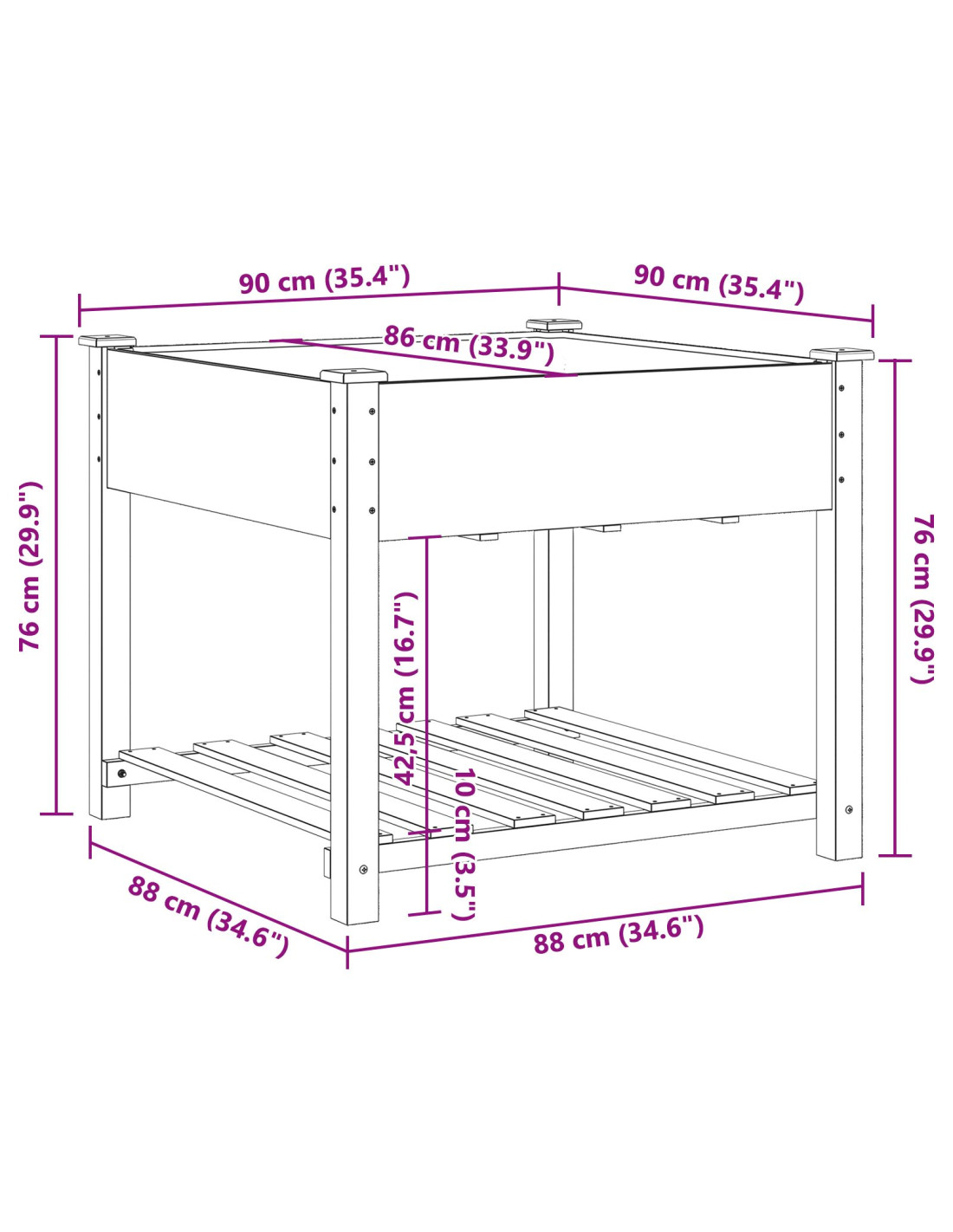- Dimensioni complessive: 90 x 90 x 76,5 cm (L x P x A)