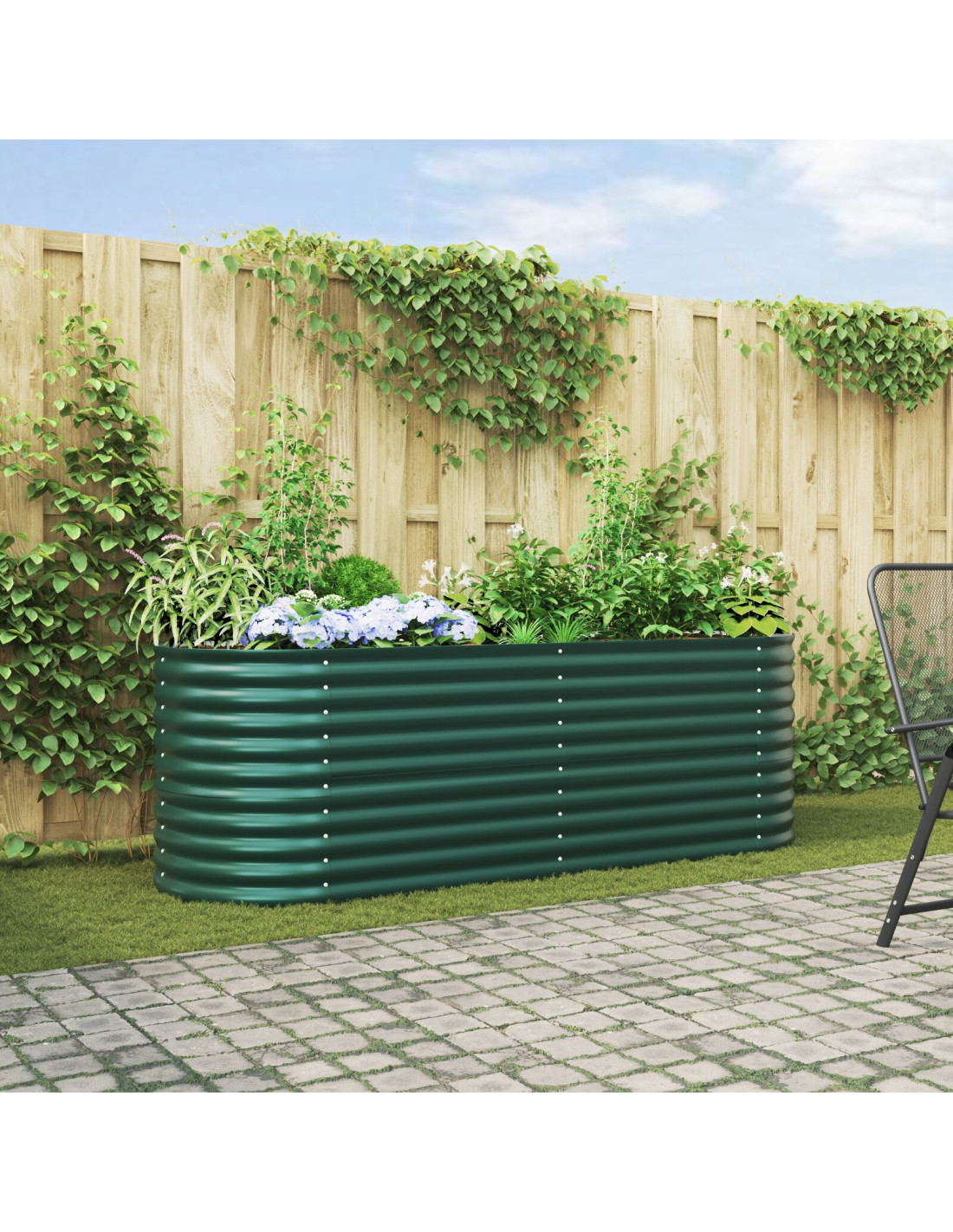 - Costruzione in acciaio resistente Questo letto elevato è fatto in acciaio, assicurando durata e un aspetto moderno. Questo materiale robusto è scelto per la sua affidabilità all’esterno, in grado di affrontare diverse condizioni meteo senza perdere la sua forma.