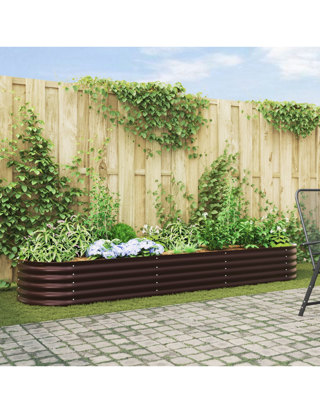Questo Letto Elevato Moderno rappresenta il design minimalista, offrendo una soluzione elegante e pratica per chi ama il giardinaggio all'aperto. Fatto in acciaio, garantisce durata e un’estetica chic che si integra facilmente in qualsiasi giardino o terrazza.