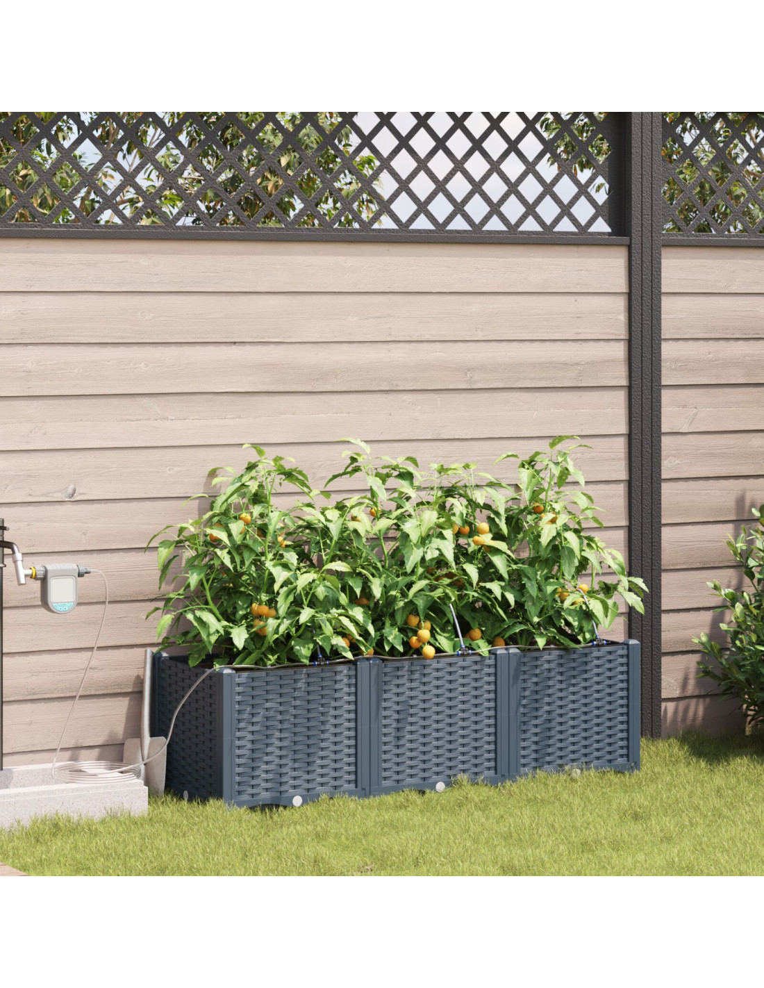 La Fioriera da Giardino con Irrigazione è la scelta perfetta per chi cerca un'aggiunta pratica e bella al proprio spazio esterno. Con un design moderno, si integra facilmente in qualsiasi giardino o terrazza. È pensata per essere semplice e funzionale, portando un tocco di eleganza nelle tue piante, sia che tu sia un giardiniere esperto o un principiante. Unisce stile e praticità per un ambiente ideale per il tuo giardinaggio.