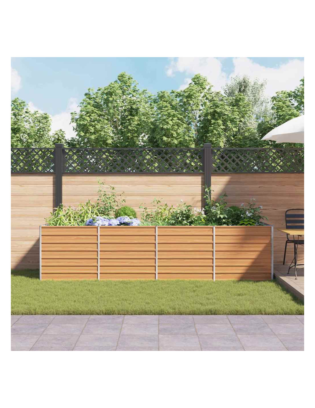 Questo letto da giardino rialzato in acciaio zincato è una soluzione resistente e moderna per coltivare piante all'esterno, perfetto per giardini o terrazze. Con un design industriale, è fatto di materiali robusti, ideali per giardini urbani. Puoi immaginare questo vaso pieno di fiori colorati o verdure, trasformando ogni spazio esterno in un paradiso verde. La sua finitura metallica è sia decorativa che funzionale, aggiungendo un tocco di stile.