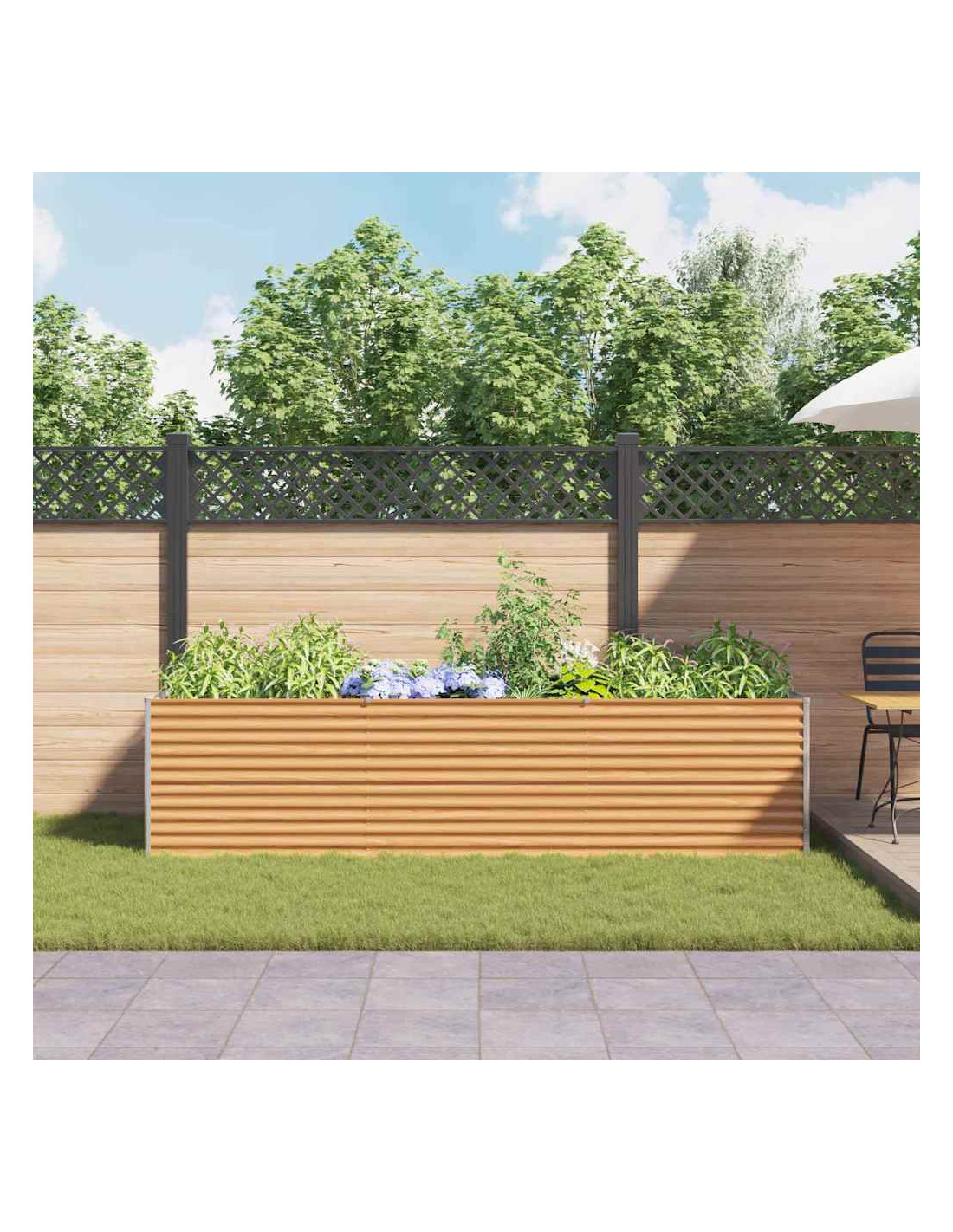 - Resistenza a clima e ruggine Questo letto da giardino è progettato per resistere a qualsiasi clima, prevenendo la ruggine. La sua resistenza alle intemperie lo rende ideale per tutte le stagioni, assicurando che sia una scelta robusta per coltivare piante in ogni periodo dell'anno.