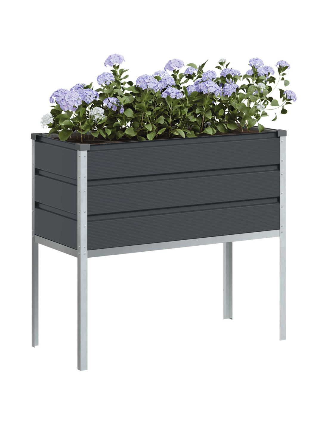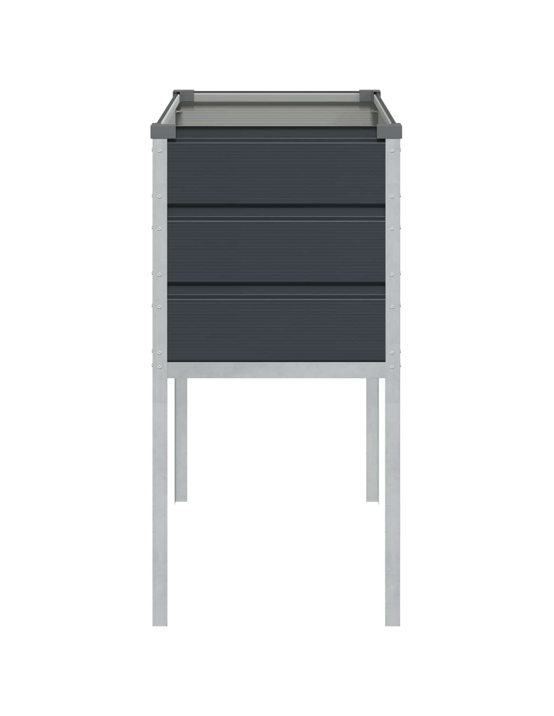 - Acciaio zincato: Realizzato con acciaio zincato di alta qualità, questo vaso è robusto e resiste alle intemperie. Questa scelta di materiale gli conferisce un aspetto industriale e una lunga durata, mantenendo il vaso bello anche sotto la pioggia.
