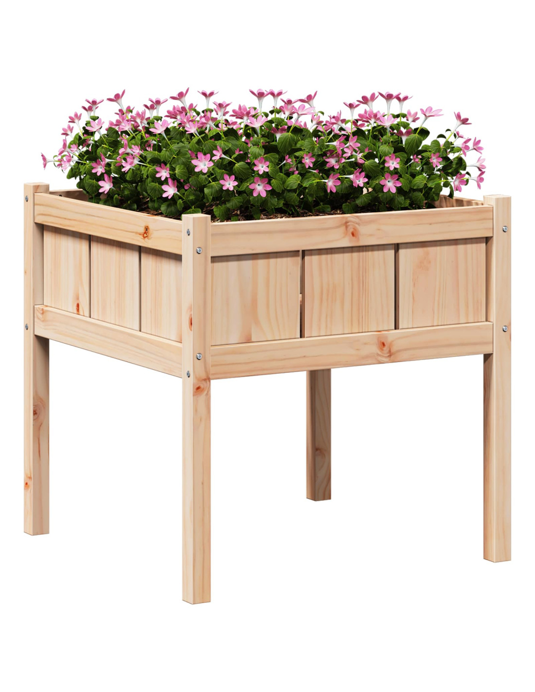 - Legno massello di pino: Questo vaso è realizzato in solido legno di pino, noto per la sua robustezza. È una base resistente che conferisce un fascino naturale e si integra bene in vari contesti esterni. Il suo look naturale esalta il verde, creando un bel contrasto.