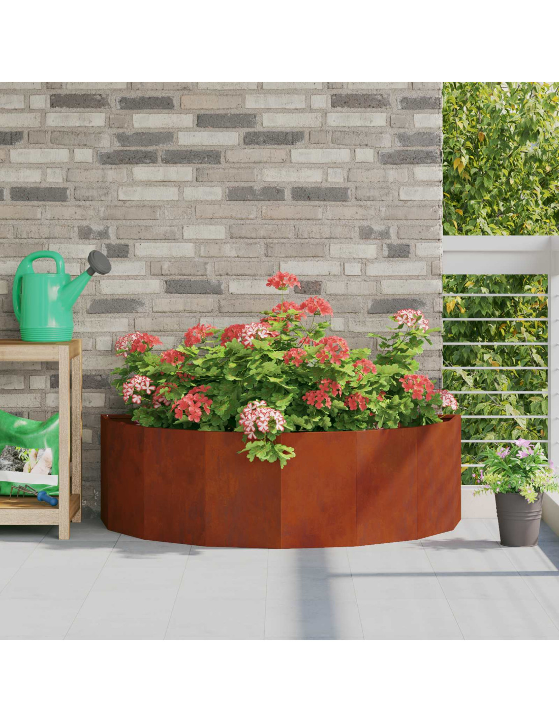 Questa elegante fioriera semicircolare è pensata per far brillare il tuo spazio esterno. Con il suo design moderno e la costruzione robusta, è perfetta per uso all'aperto. Il suo acciaio di alta qualità mette in risalto le tue piante per anni. Migliora facilmente i tuoi spazi esterni permettendo idee di giardinaggio creative grazie alla sua forma versatile che si integra in ogni stile.