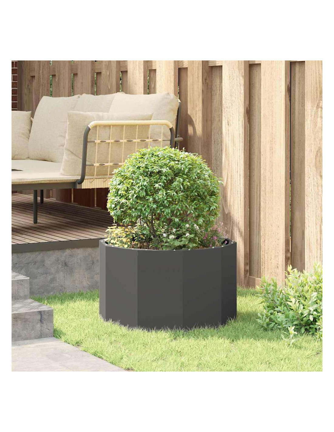 Il vaso da giardino rotondo è progettato per durare e si adatta perfettamente a qualsiasi spazio esterno. È fatto principalmente di acciaio e aggiunge un tocco di eleganza moderna a giardini, patii e terrazze. Il suo aspetto robusto è accompagnato da caratteristiche pratiche, rendendolo ideale per giardini sia urbani che di campagna. È perfetto per esperti e appassionati di giardinaggio, permettendo di coltivare una varietà di fiori e piante.