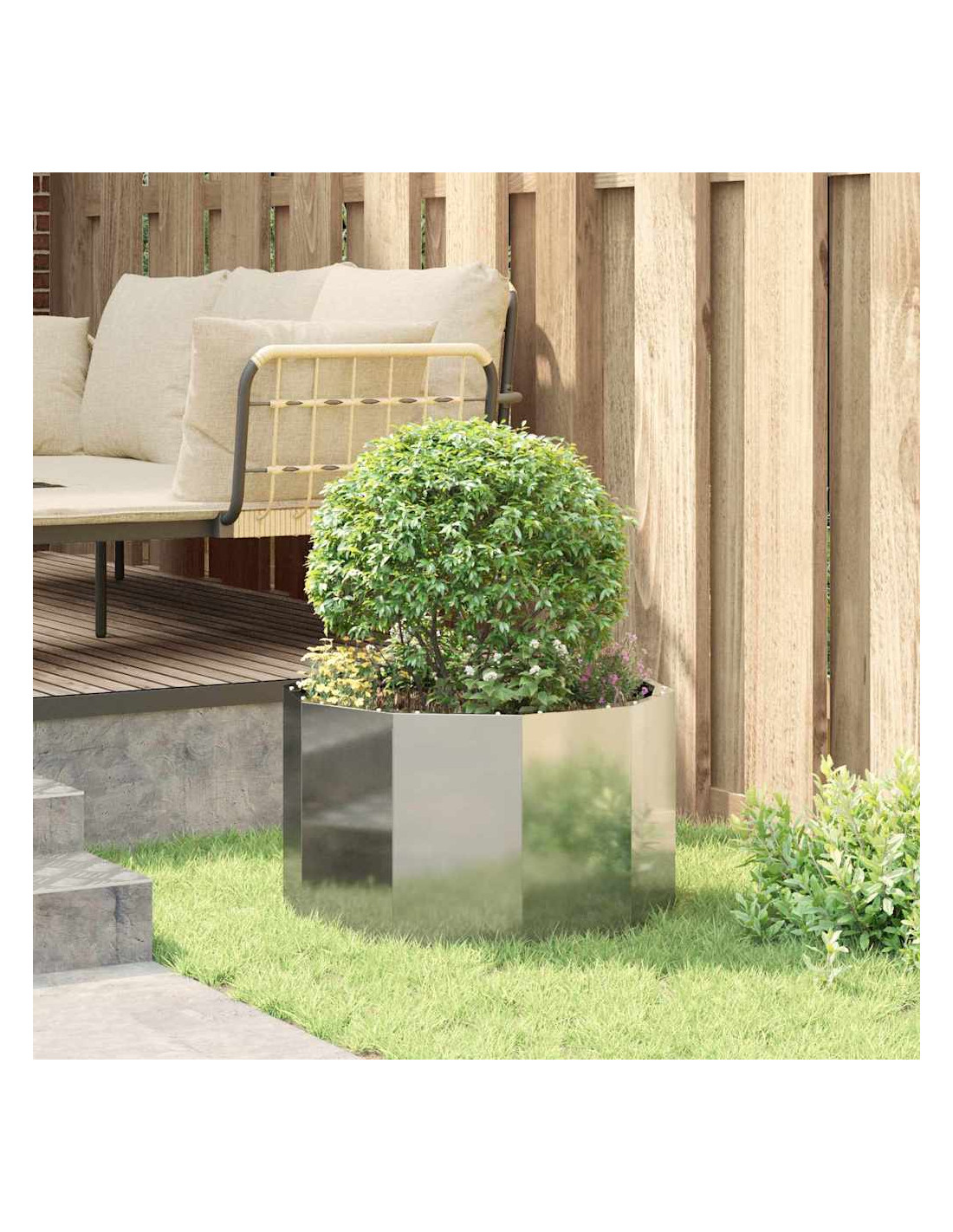 Il vaso da giardino rotondo è progettato per durare e si adatta perfettamente a qualsiasi spazio esterno. È fatto principalmente di acciaio e aggiunge un tocco di eleganza moderna a giardini, patii e terrazze. Il suo aspetto robusto è accompagnato da caratteristiche pratiche, rendendolo ideale per giardini sia urbani che di campagna. È perfetto per esperti e appassionati di giardinaggio, permettendo di coltivare una varietà di fiori e piante.